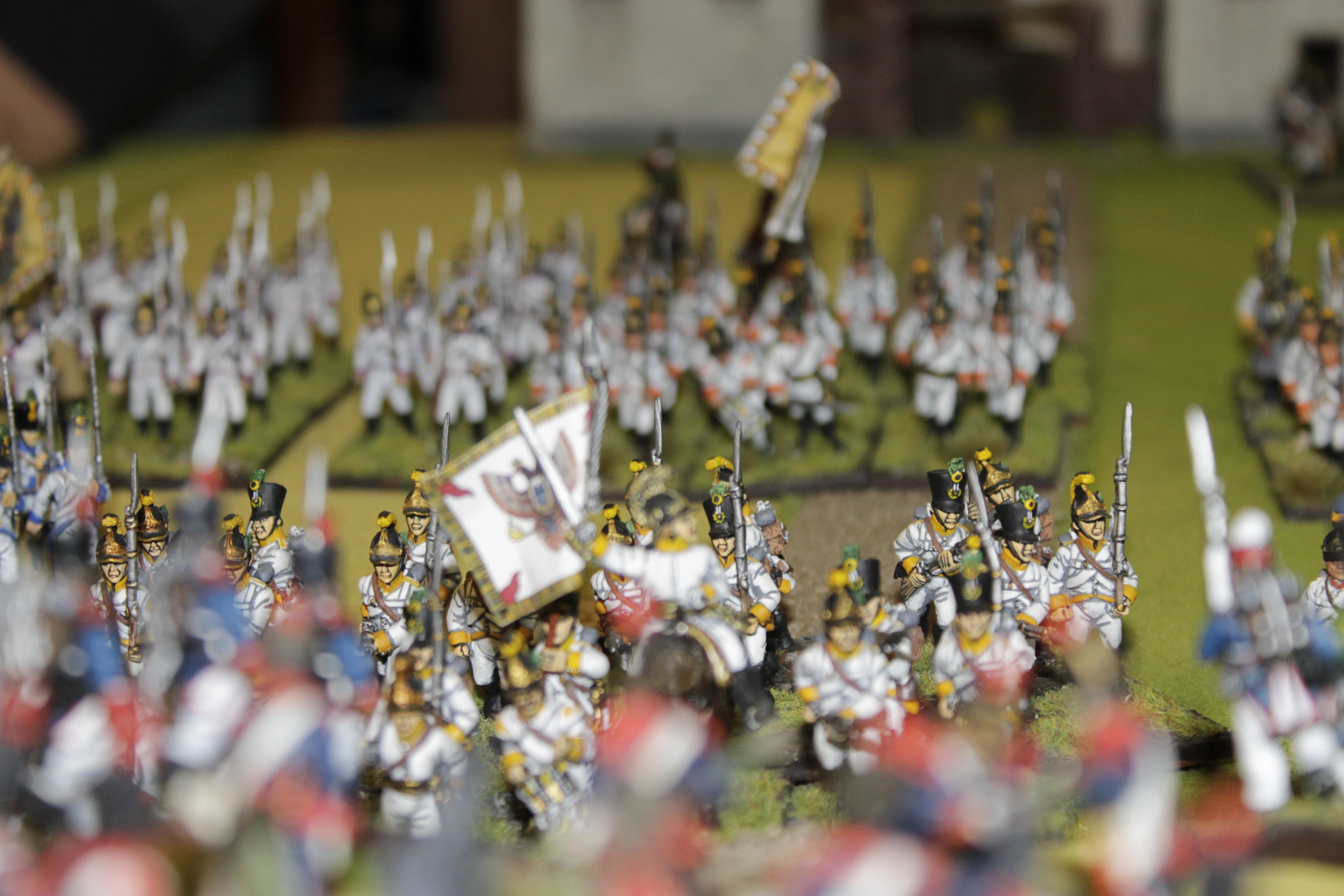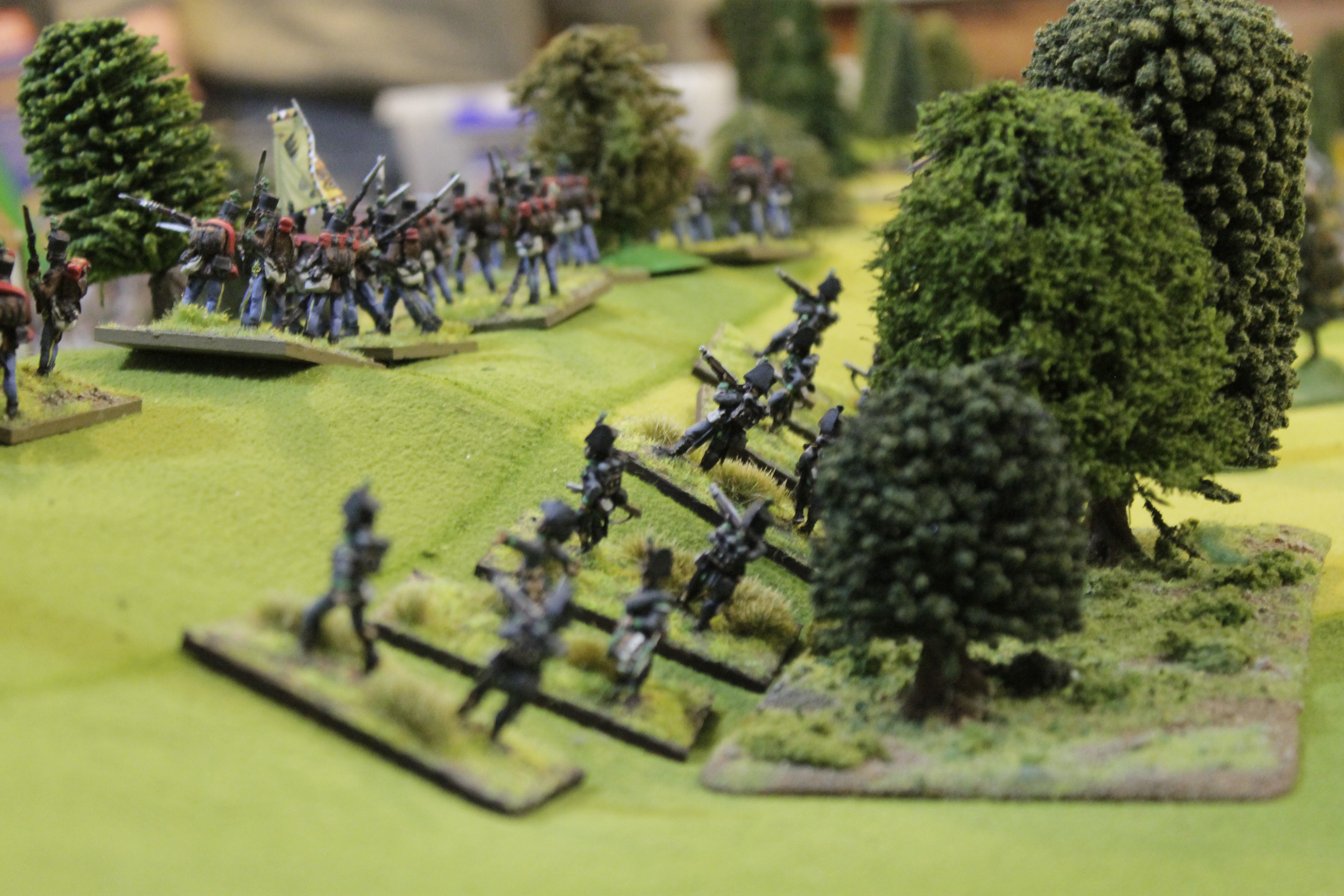 Front left 3 Ligne advancing, centre right Liechenstein is advancing out of Hausen to cover Kaysers flank, and the 48 Ligne can be seen following skirmish screen