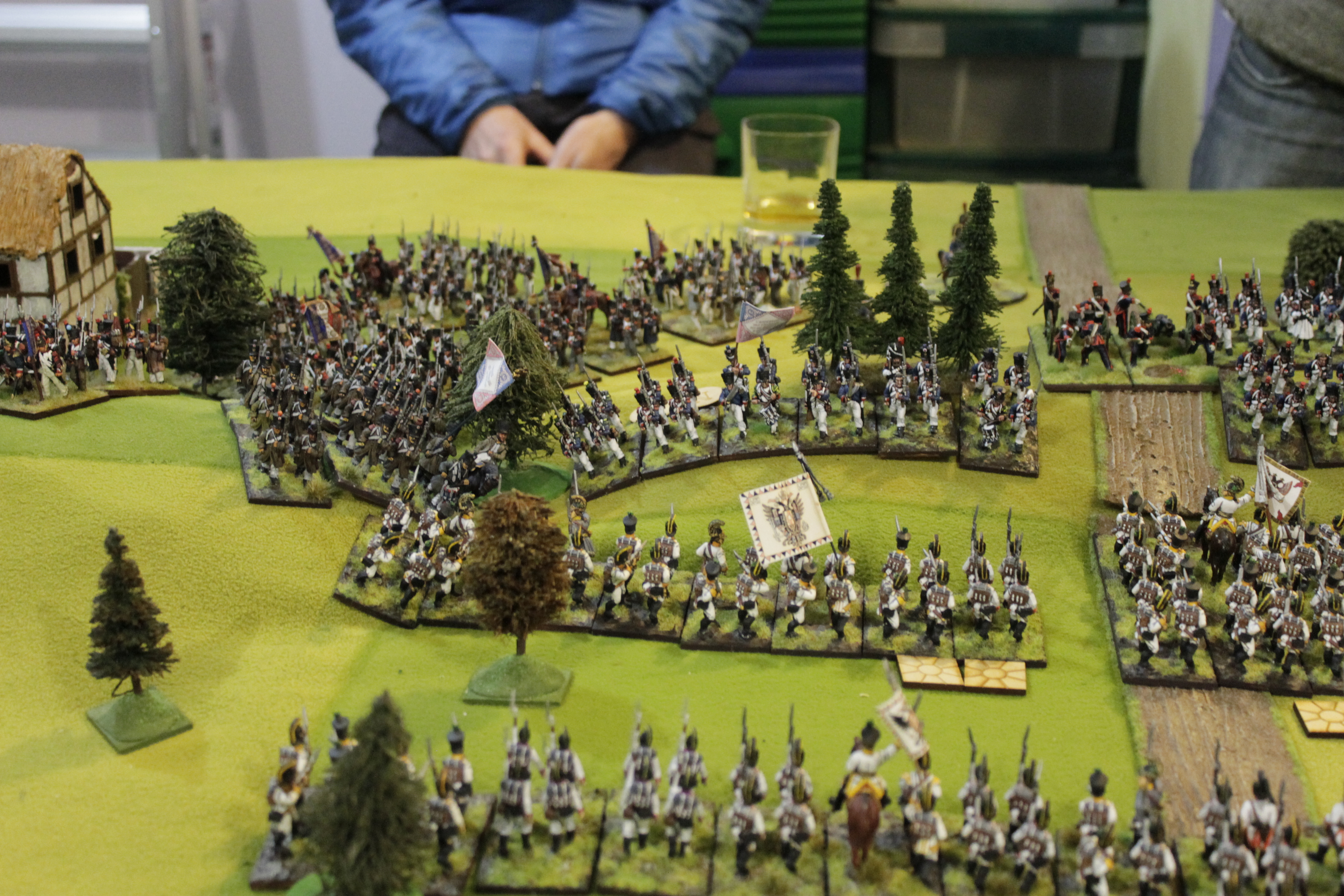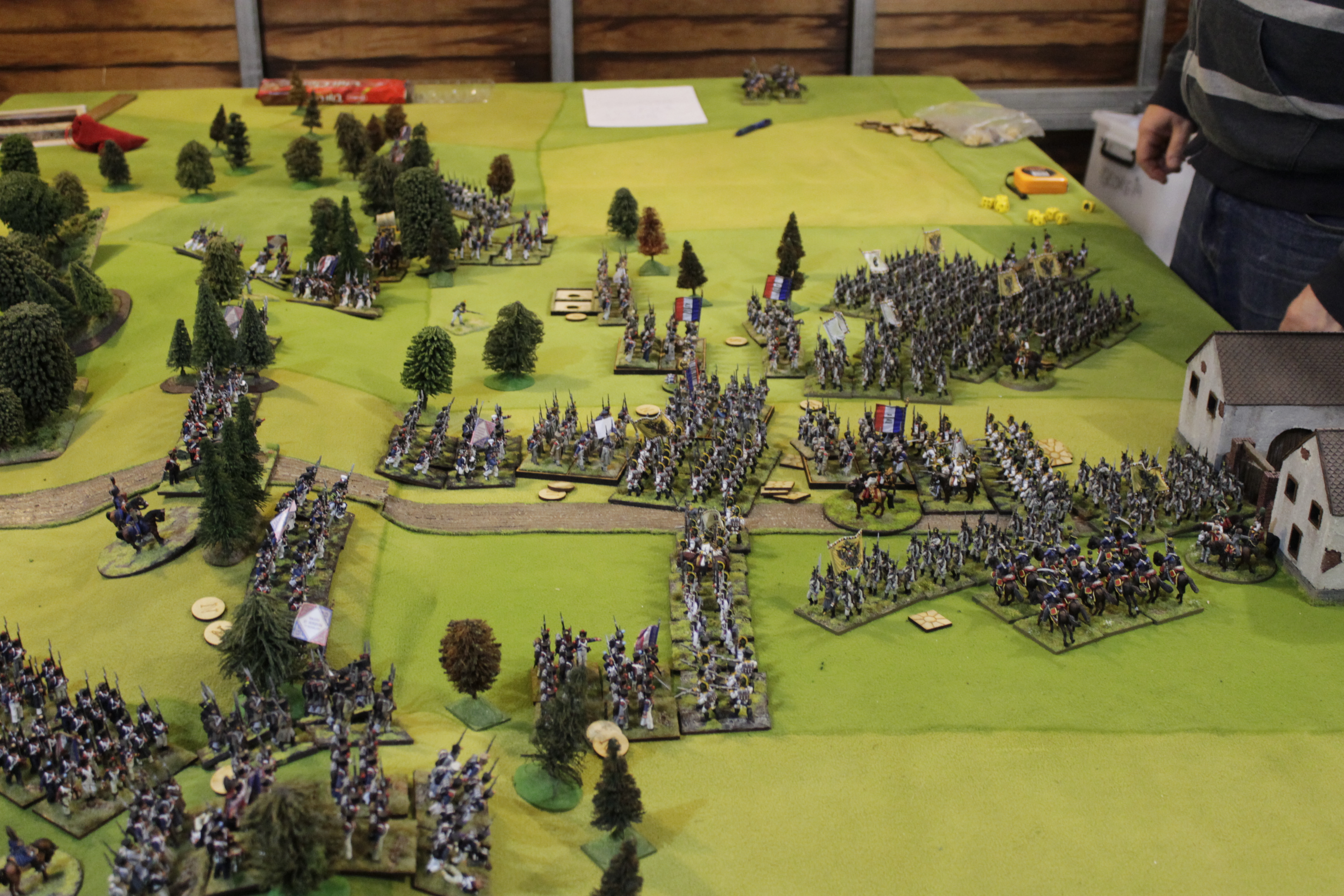 The French make a general advance in the centre and their left, with the Austrian left already destroyed and the Austrians coming up worst in the melees to the right of Kayser’s retreating brigade we called it a night with another French Victory.