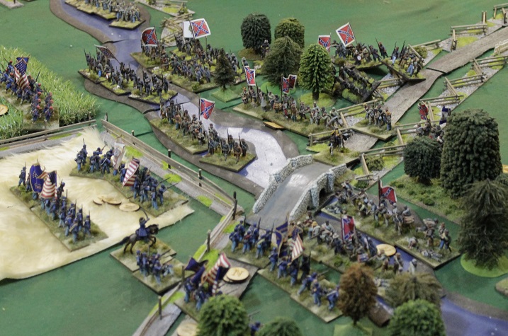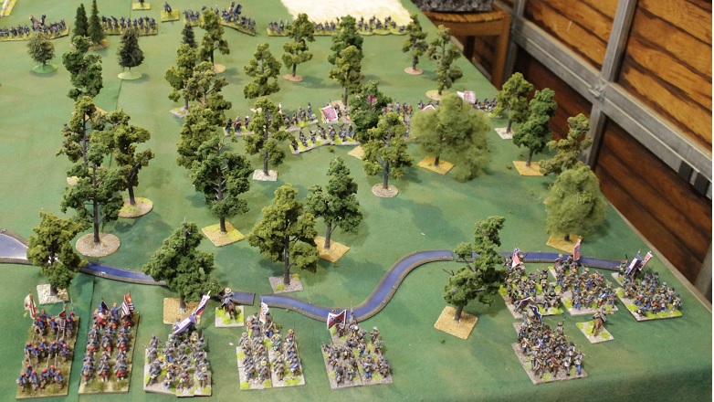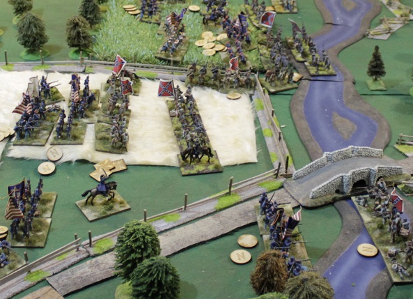- Union: Burns deploys on Union edge with no regt closer than 6 inches to any other regt in the brigade.