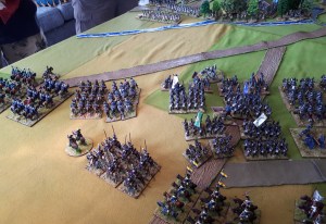 On Allied left Yorke arrives early with 1st and 8th brigade marching onto table.