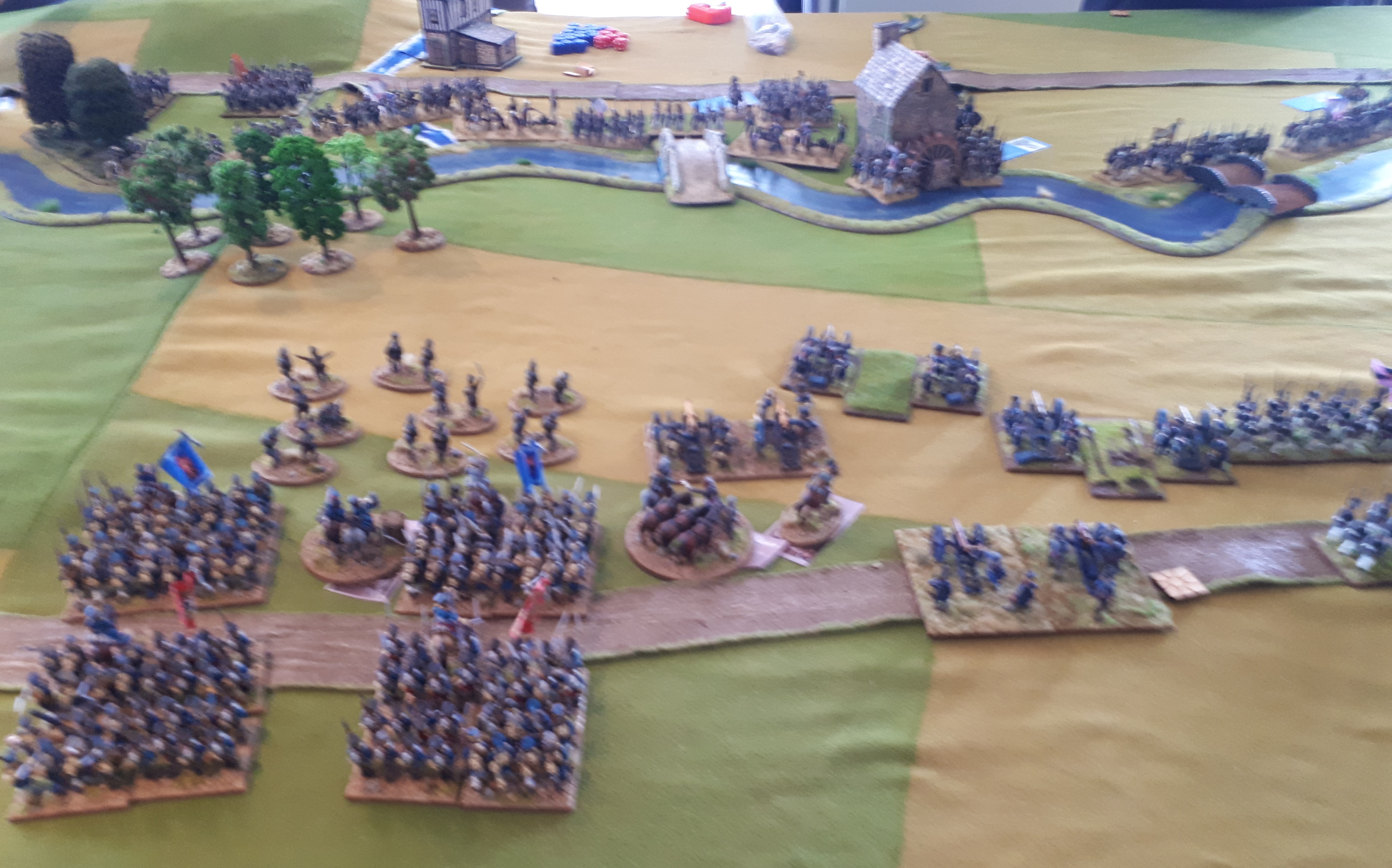 On Allied left Yorke arrives early with 1st and 8th brigade marching onto table.