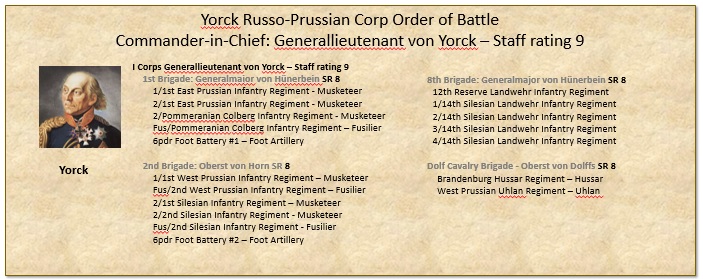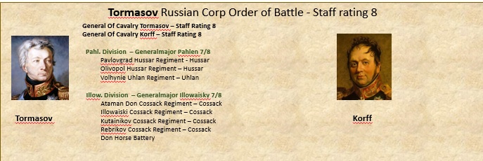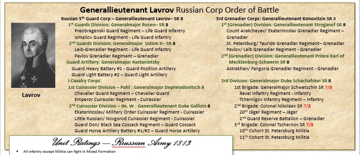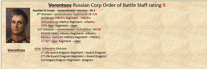 Keith would have Vorontsov’s troops with the infantry to the left of Bautzen with the cavalry the right. The Jager to skirmish in front of Bautzen and to await the Prussian reserves before engaging.