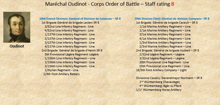Oudinots force was different to my assessment in that the 2nd division was cavalry and not infantry as expected.