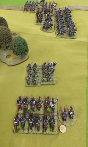 The brains trust(that doesn’t include me!) have made some changes in the points matrix so Goldie and I decided play 200 point game. Goldie to use his Prussians and I would use French. Half way through a rebase/tidy up of my French so had to proxy in some Vistula legion units.