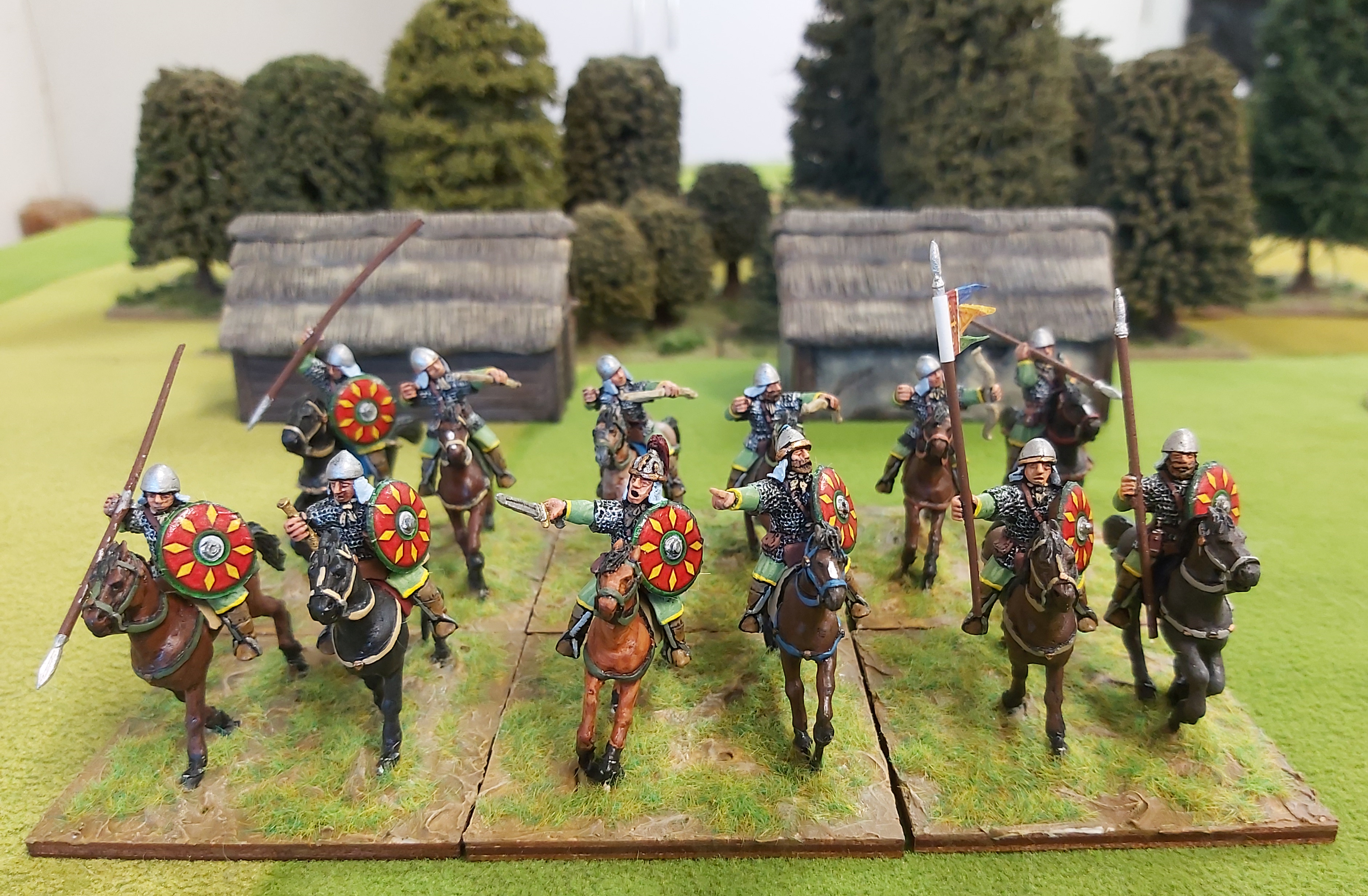 First up is a unit of Byzantine light cavalry that was 95% completed in Lockdown, however the shield xfers were faulty. Stephen Hales from LBM Studios sent me replacements free of charge and I have put the xfers on the shields and added a LBM banner.