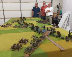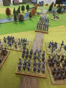 There was one piece of high ground which 2 Bavarian batteries took over. This is their first shots…needed 6’s to hit…2 6’s rolled. Awesome.