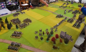 So some Gaulish Druids were inhabiting a wood close to Saint Aubin and came to wee Nappy’s aid. A deep magical mist rose over the plains, leaving the road to Saint Aubin and thence Nogent as the only route you could take. You have to form column of march, no racing across the flat open plains in pursuit of your weary, beaten enemies. So being chivalrous chaps, our cavalry sat on their steads while the French formed nice columns on the road…and off they went……I dare say in as much shock as we were(but much happier!).