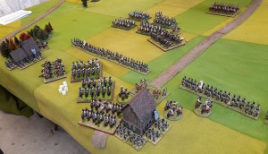 Now somehow a French Regt has got around the village with the Wurttemburg Jager in and destroyed the Wurttemberg battery. I do recall giving express instructions on my batteries to be safely positioned as is a campaign, did not want to lose any. Gggrrrr. On the flip side, this cavalry regt doesn’t appear in anymore photos so assuming they did a sweeping advance onto the line regt and they were destroyed.