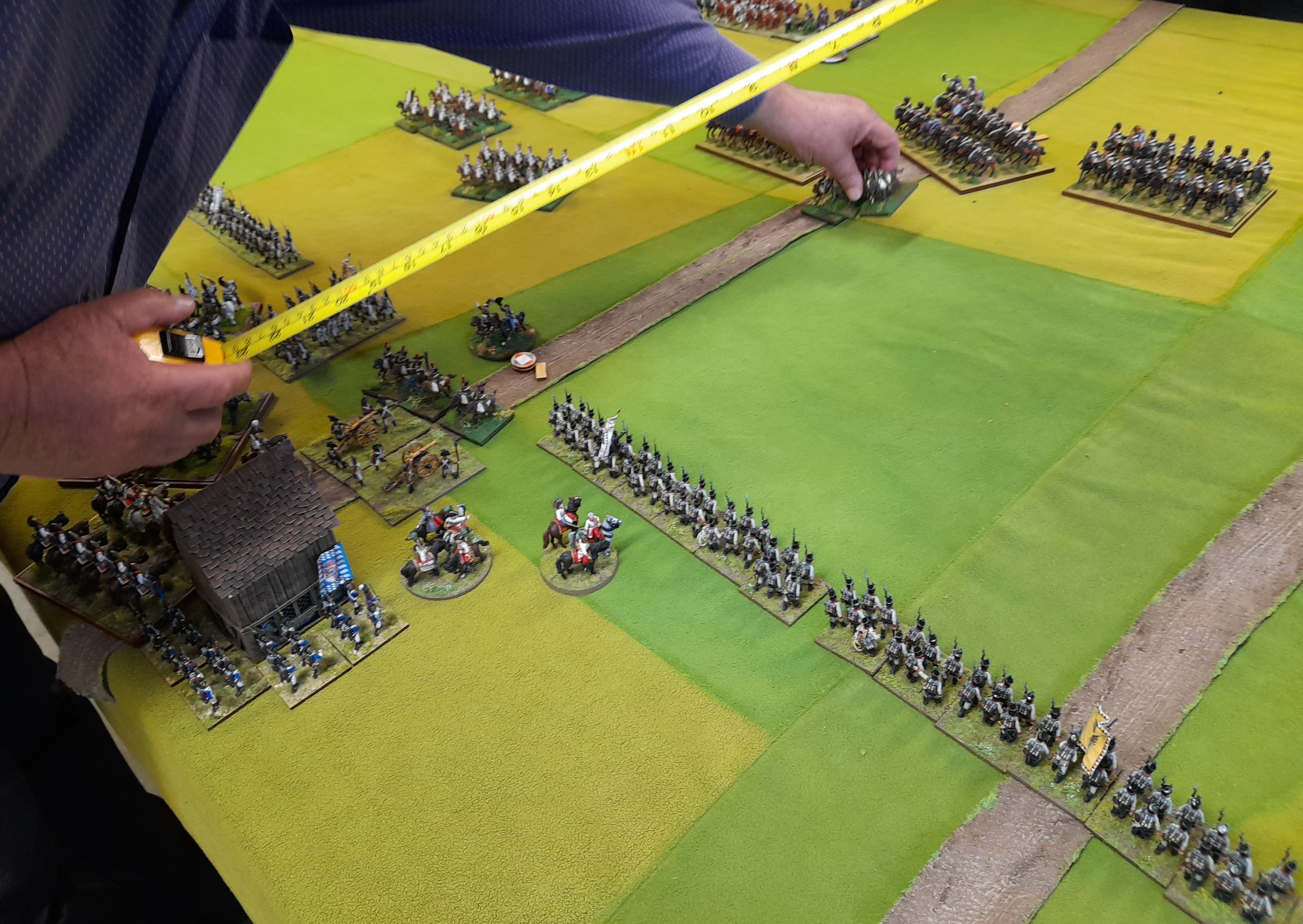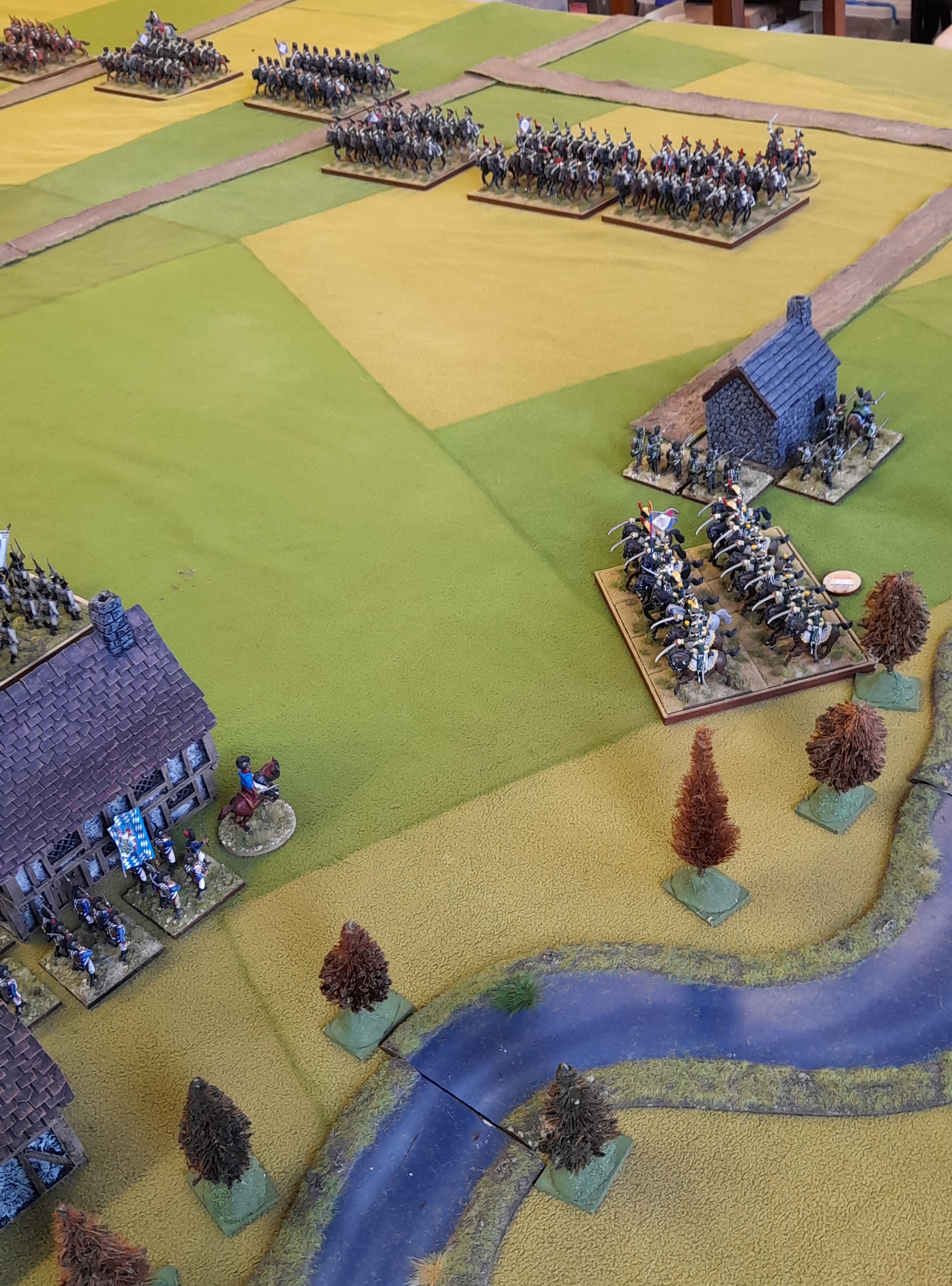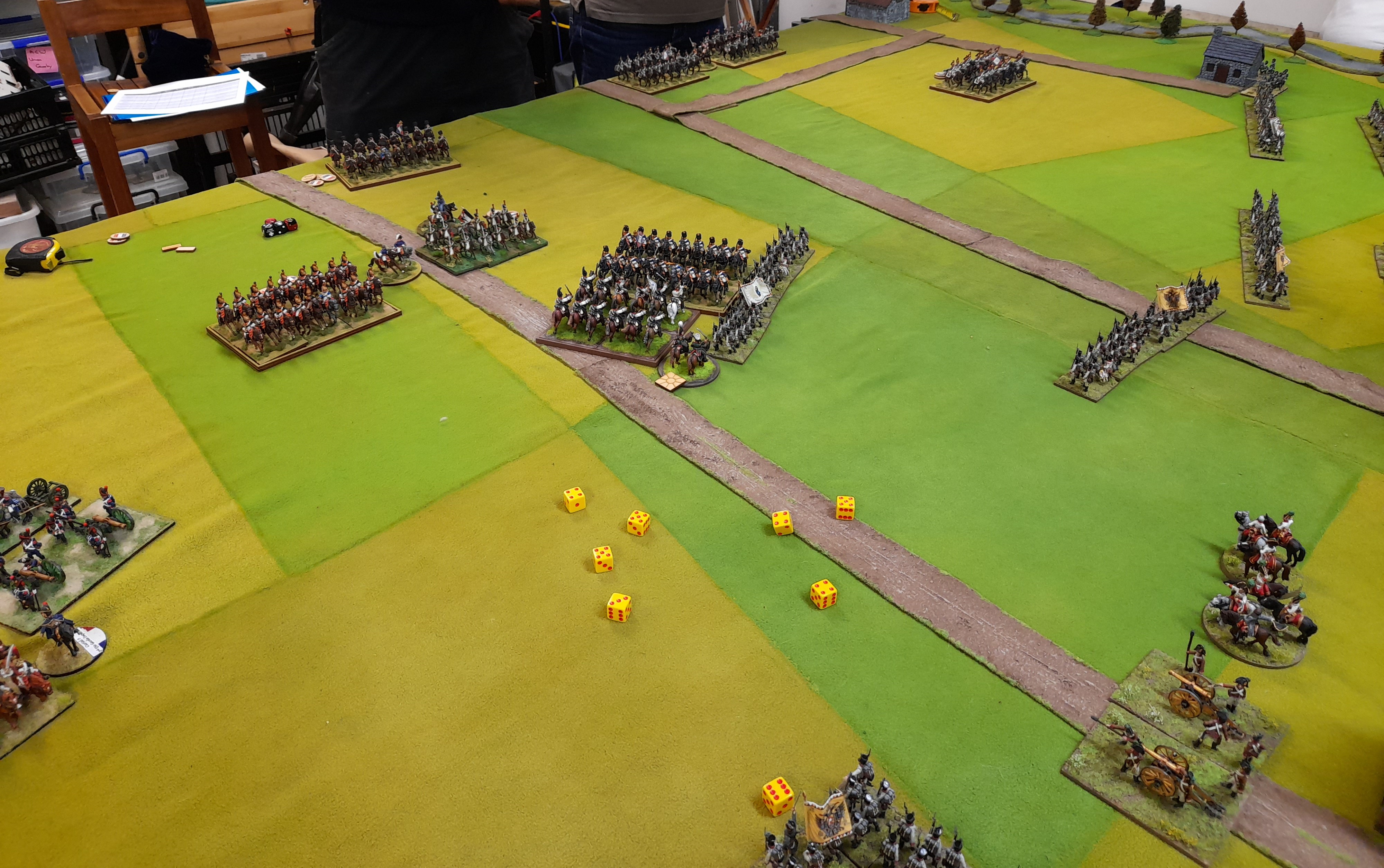 So some Gaulish Druids were inhabiting a wood close to Saint Aubin and came to wee Nappy’s aid. A deep magical mist rose over the plains, leaving the road to Saint Aubin and thence Nogent as the only route you could take. You have to form column of march, no racing across the flat open plains in pursuit of your weary, beaten enemies. So being chivalrous chaps, our cavalry sat on their steads while the French formed nice columns on the road…and off they went……I dare say in as much shock as we were(but much happier!).