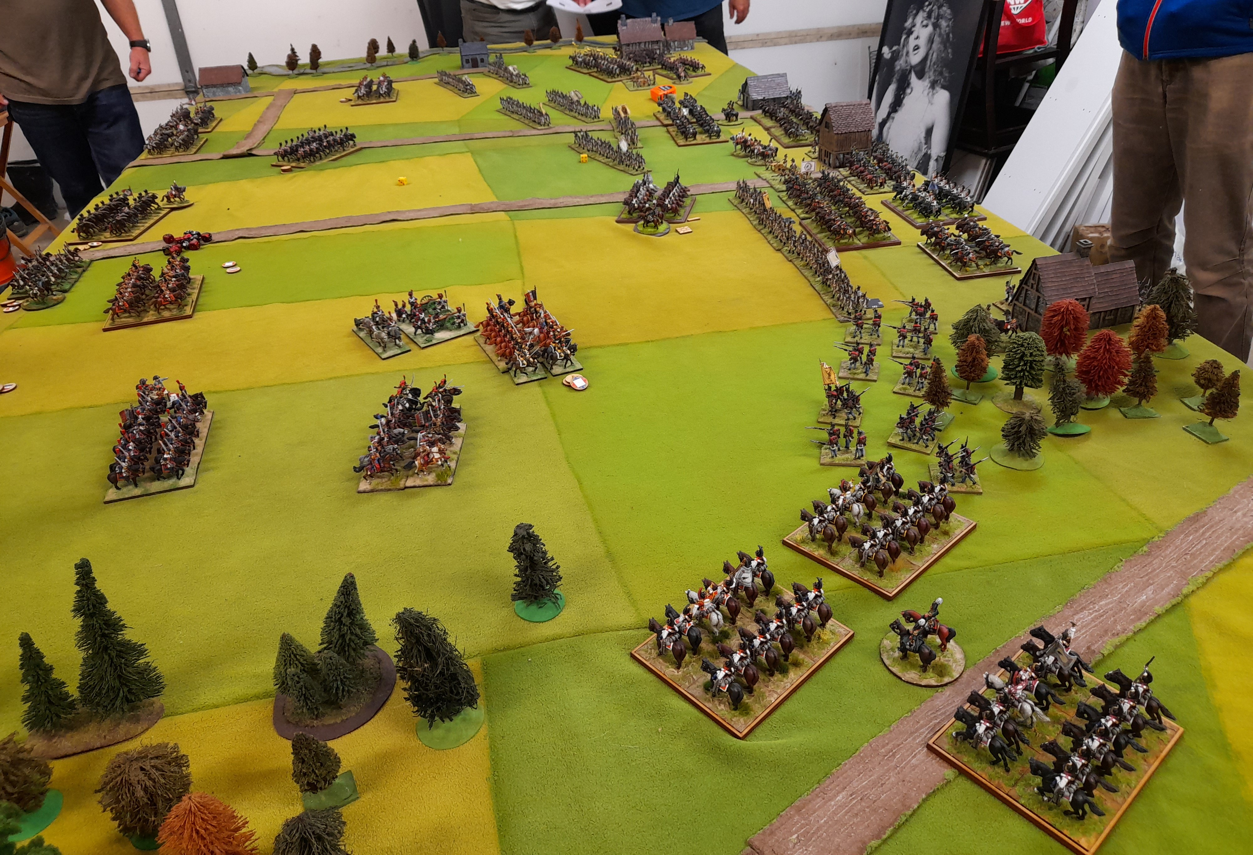 Out of the camp mist, Duka’s Russian Cuirrassier Division rides up along with some more Austrian infantry and guns!