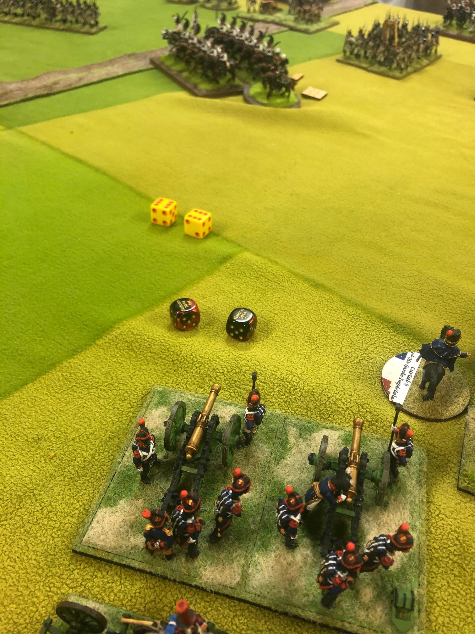 Guard horse artillery land two 6 hits on the Russian? Cuirassiers who nonchalantly roll double 6s to shrug them off (disordered though)