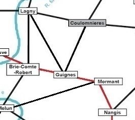 Turn 8 and Steve is moving from Brie to Guignes, and Robert is moving from Mormant to Guignes…..with Oudinot leading and Marmont following half a day behind. So Steve has to stop the French from exiting Guignes as there is a large Allied force nipping at Marmont’s heels.