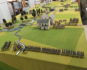 So we have a meeting engagement where the Allies have to block the French from exiting the table. If they succeed, the French are destroyed as the pursuing force will catch them. If the French succeed on getting away, both sides retire and suffer stamina penalties. It was at this stage it started to go wrong for the Allies as they interpreted the instructions as the French needing to exit to Brie and needed destroying where as all they needed to do was stop the French making it to the Northern side they were defending to win. DOH!!
