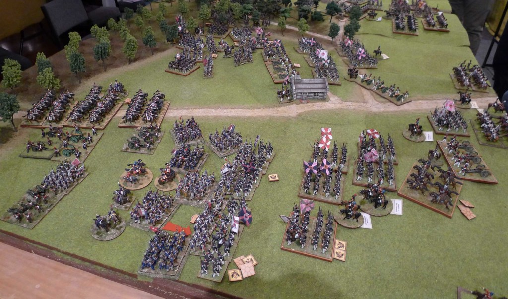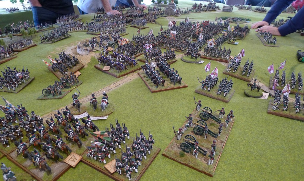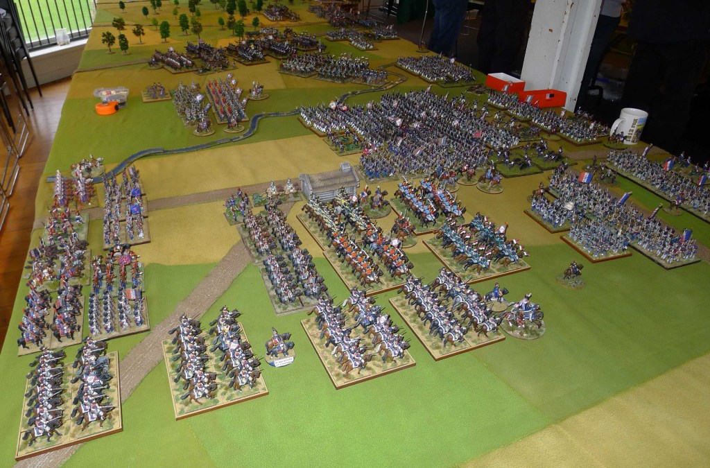 As always in a mega game like this, one gets engrossed in your part of the battlefield so I will simply show a series of pictures of the battle taken by John and interpret them. My role this time was as Grouchy commanding the French cavalry in the North.