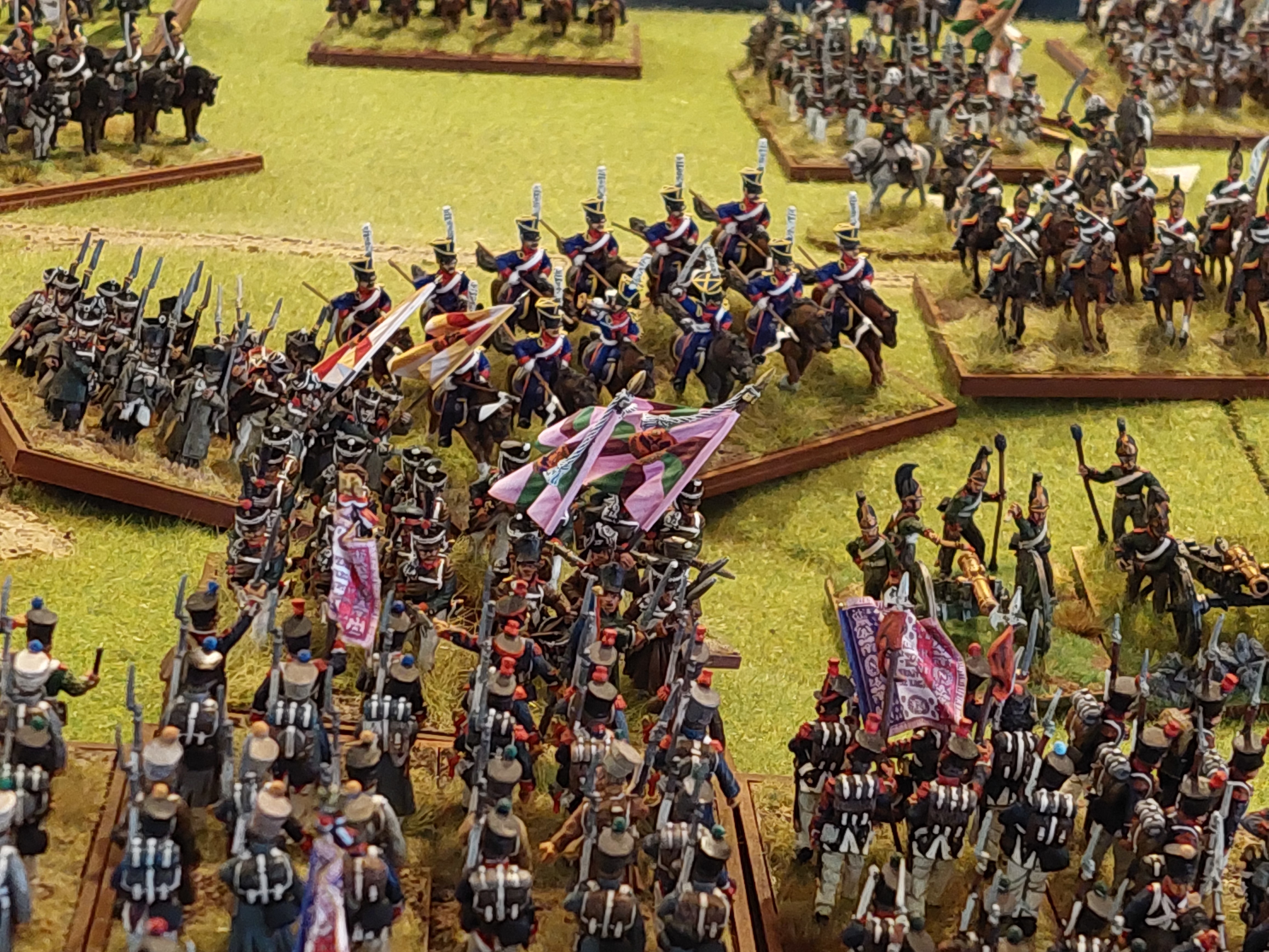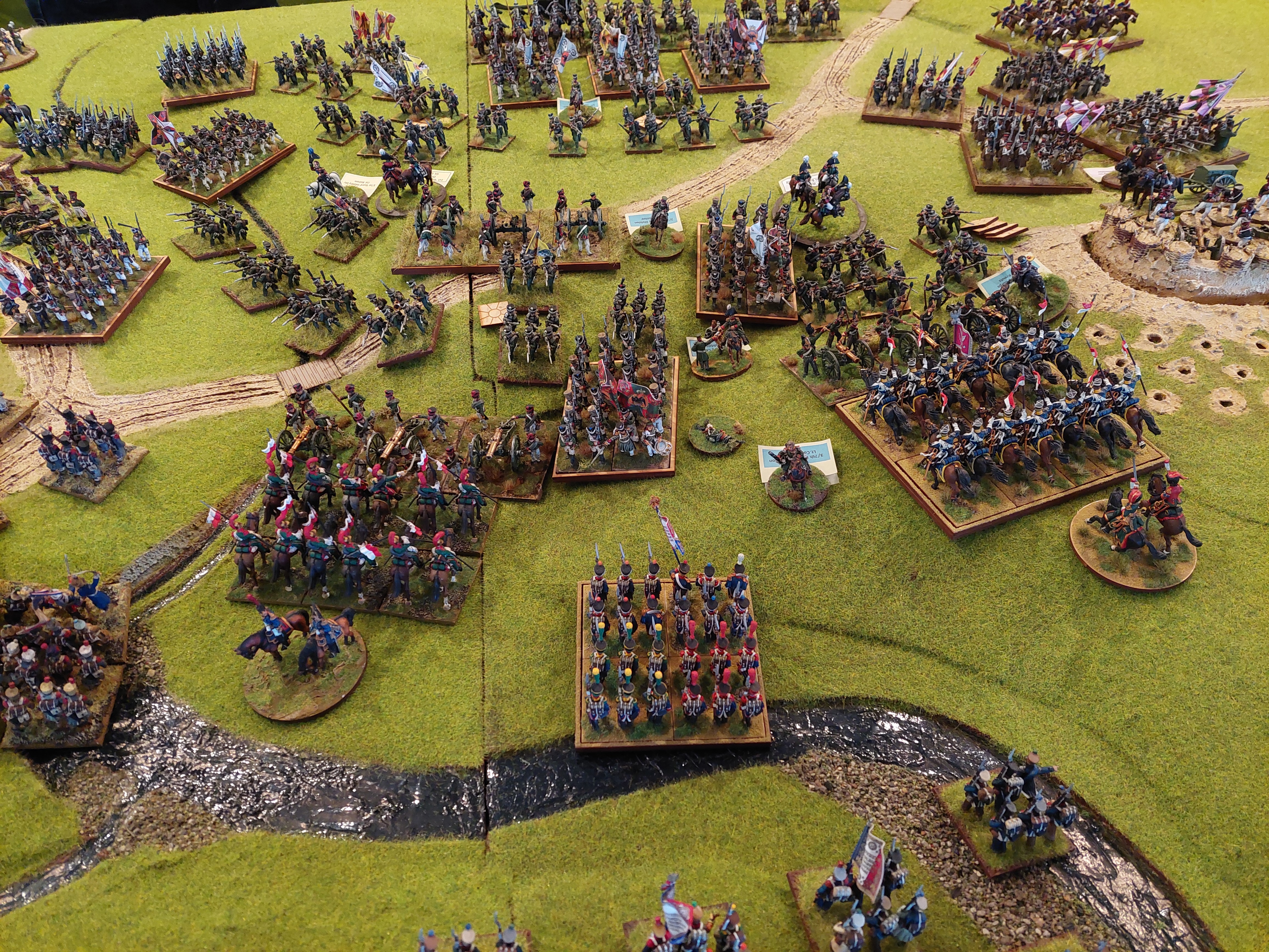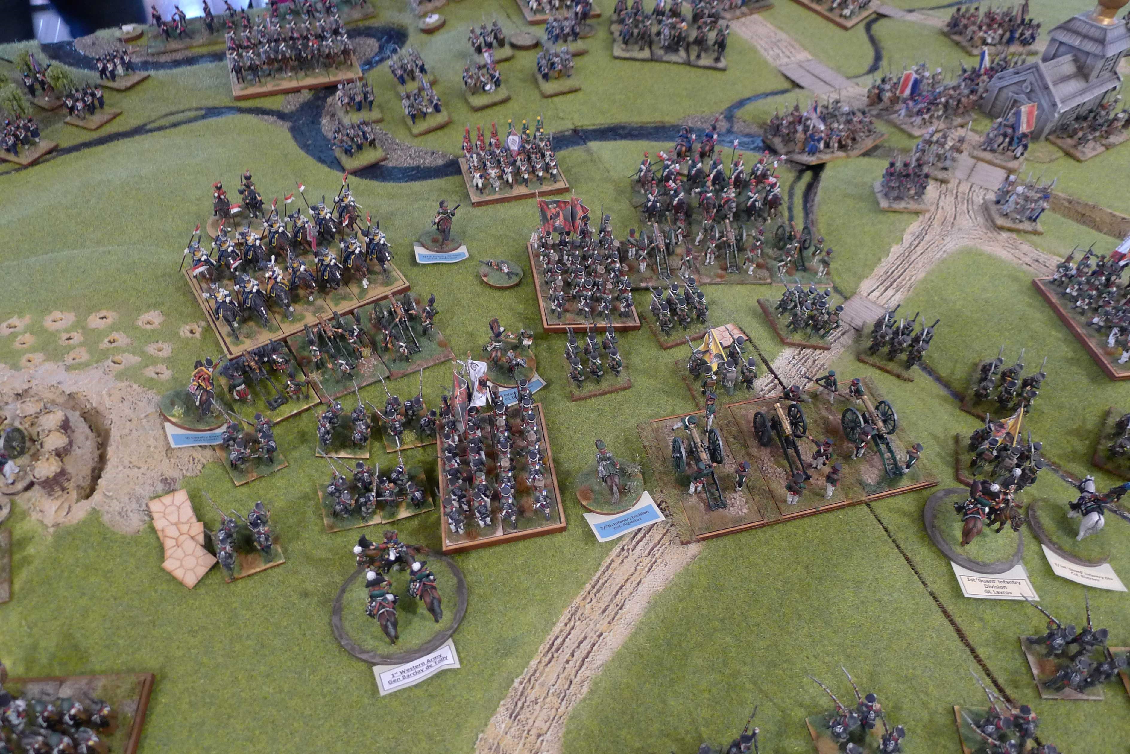 As always in a mega game like this, one gets engrossed in your part of the battlefield so I will simply show a series of pictures of the battle taken by John and interpret them. My role this time was as Grouchy commanding the French cavalry in the North.