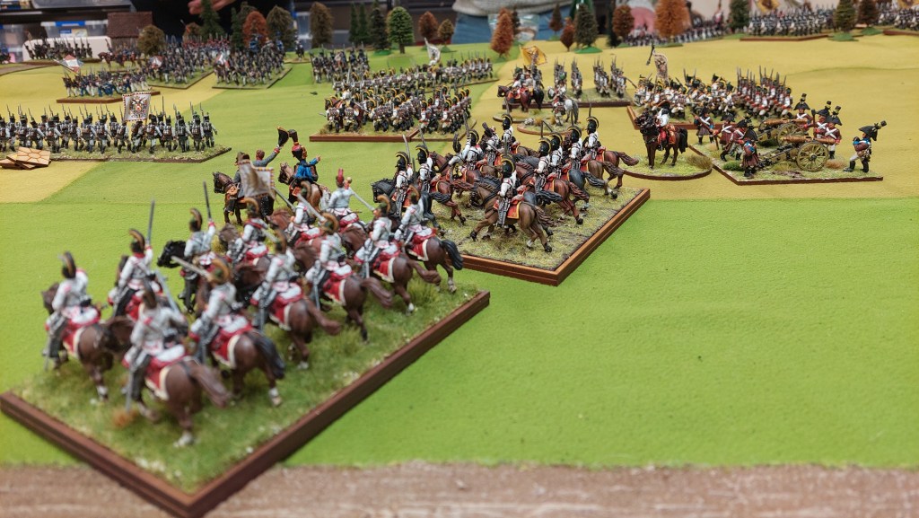 Meanwhile in the centre….Arch Duke Charles has arrived with an escort of Cuirassiers ….he was there to look good…not join in! The Austrians here had lost their artillery but still had intact bttns.