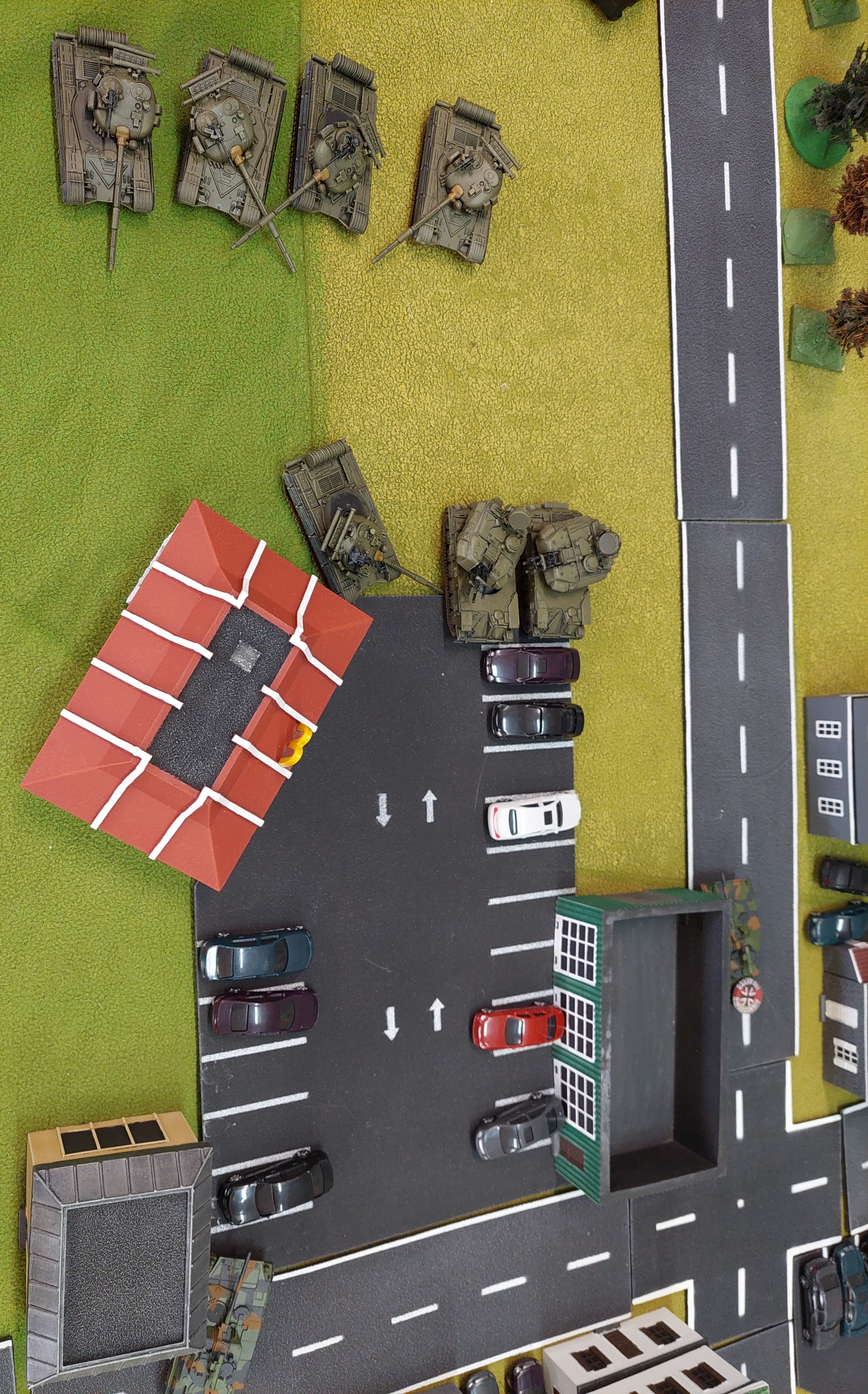 For the non enlightened this is combat in 1985, NATO v Soviet Pact using 15mm models/figures by Battlefront. I had decided to collect West Germans and Goldie went with Soviets. So we had been assembling and painting models, adding some scenery and were ready to go.