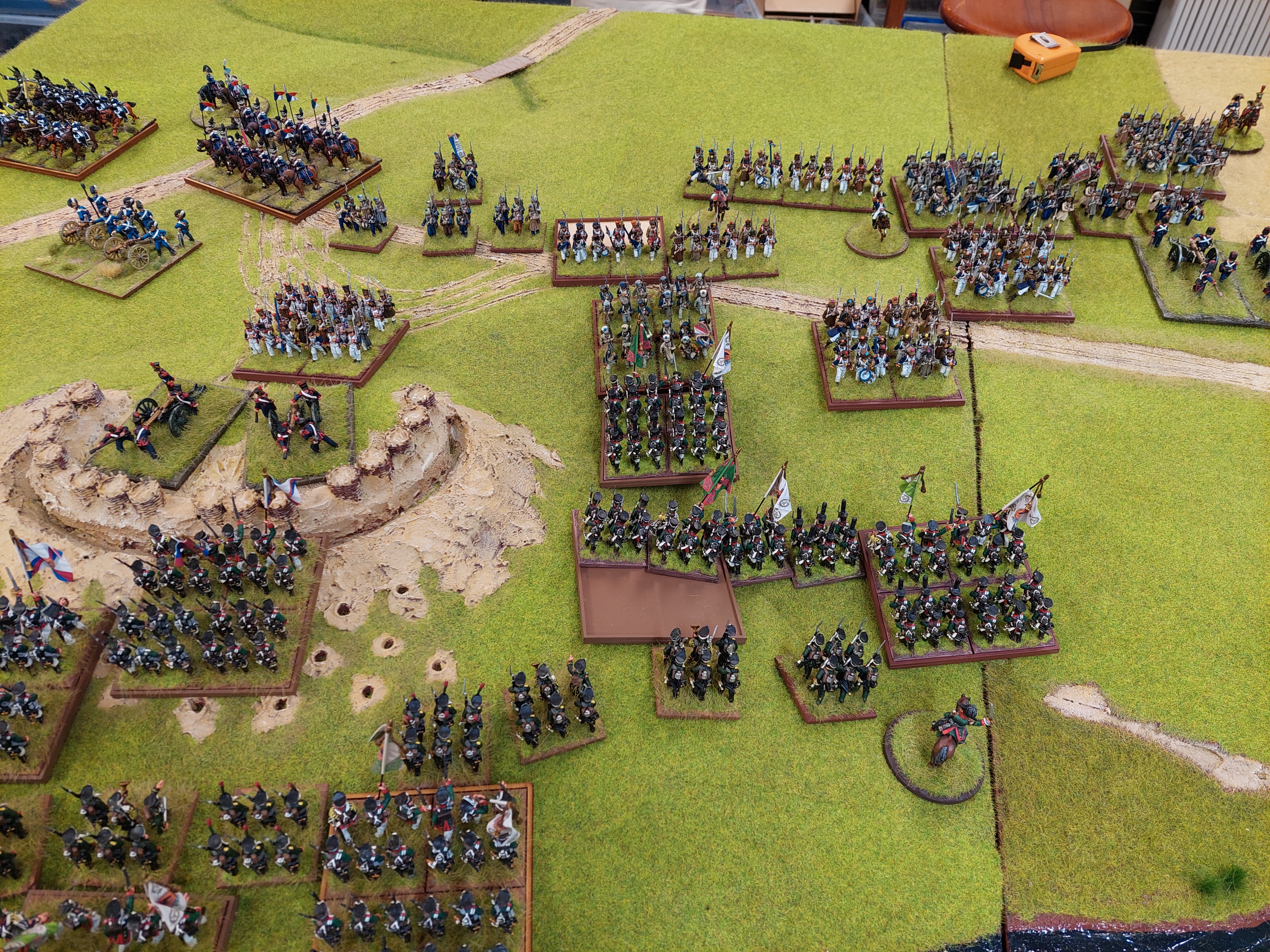 The terrain boards were the Great Redoubt down to the Fleches but without the southern woods instead I left it open and deployed cavalry brigades on the now open flank.