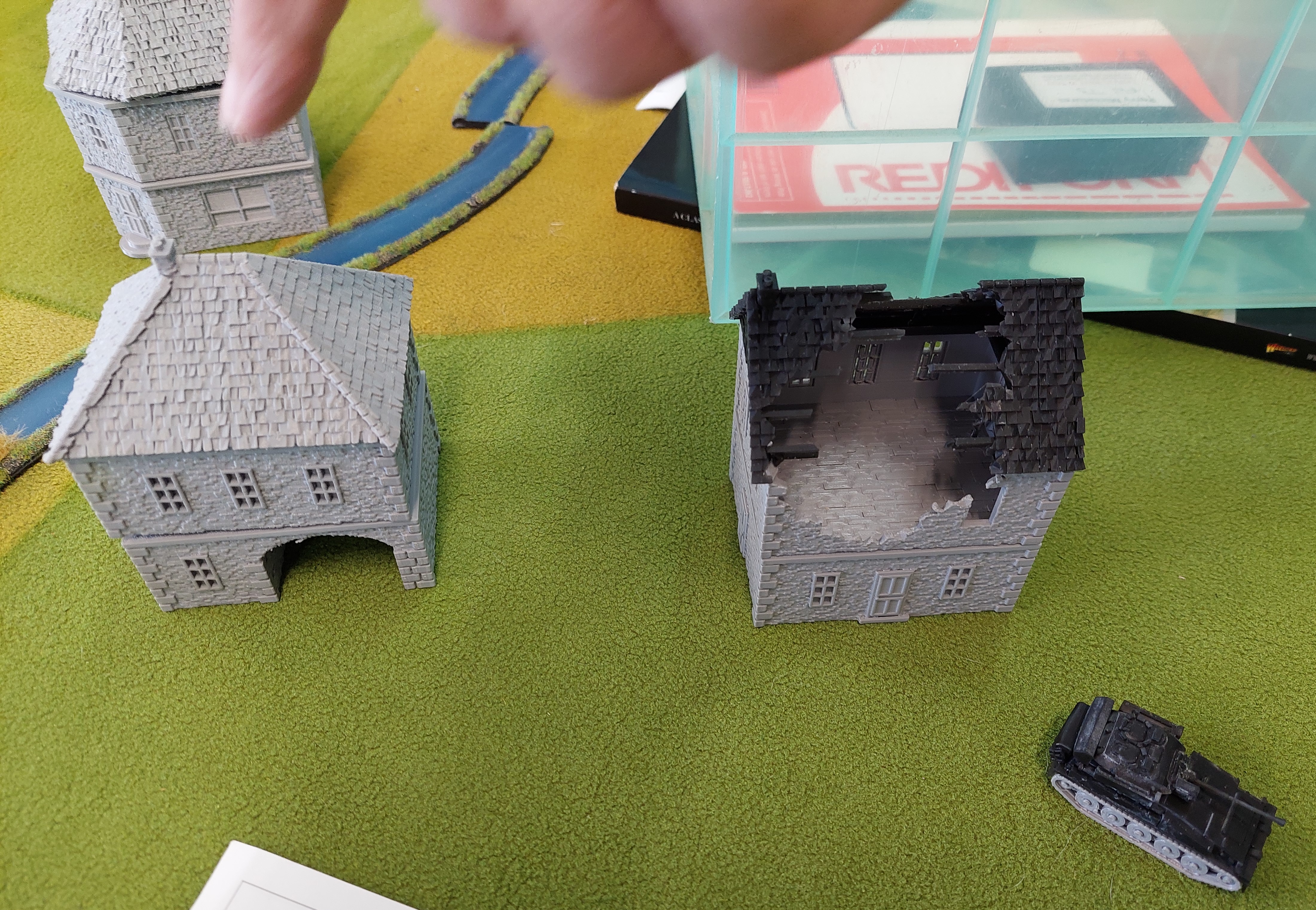 Shot through my Russkie’s to Roberts French at the far end. It was a rush to reach the centre of table where woods and village was!