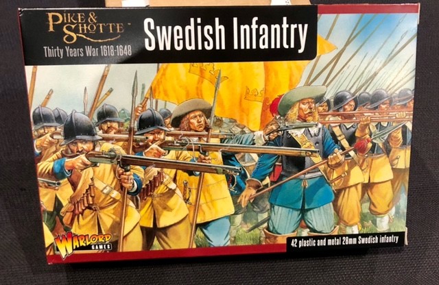 So Russ asked the INNOCENT question……one patently devised to move us to yet another period! He has been convinced to get into Pike and Shotte…….have some of us painted figures… followed by a picture of his first purchase, a box of Warlord Games Swedish infantry arrived today.