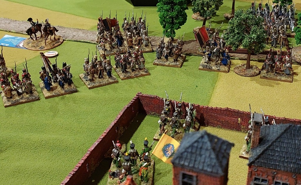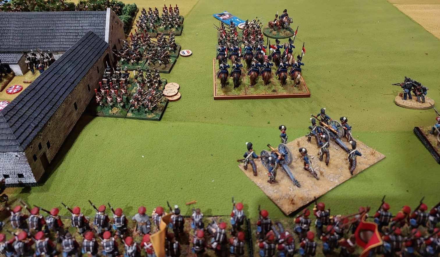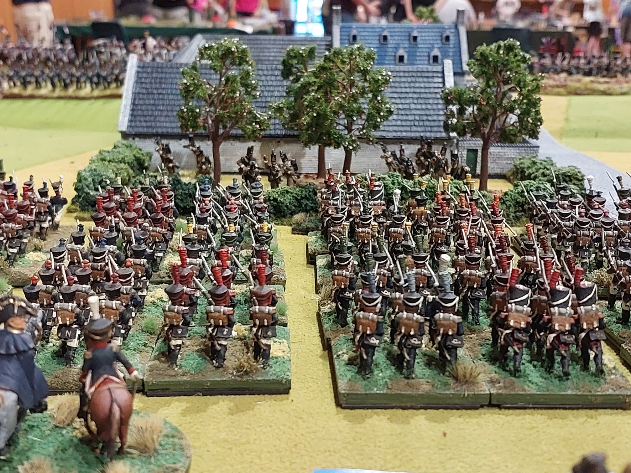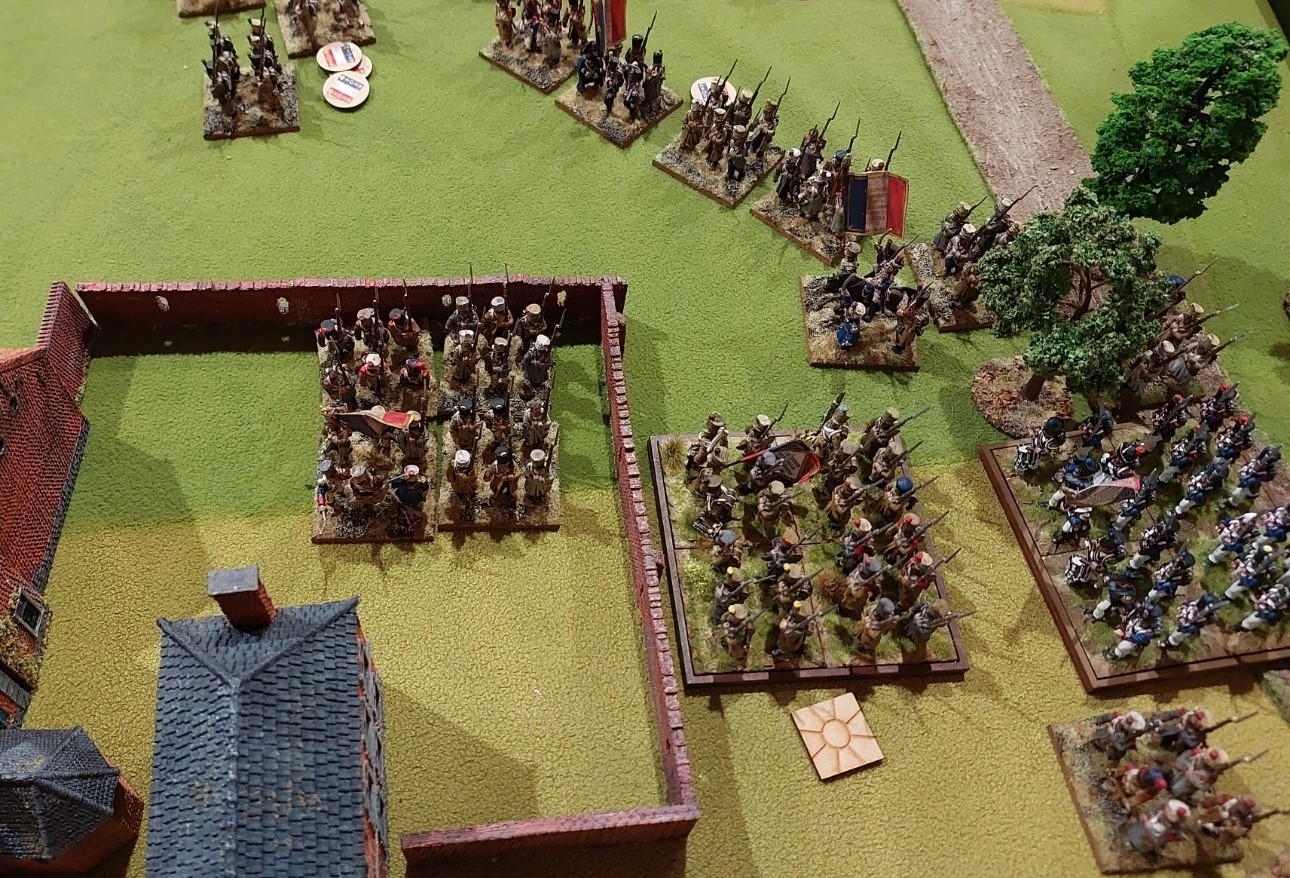 Keith(Reille) advances his Division’s towards the Beautiful model that is Hougoumont. Alan has made a superb job of this one. Nassau’s can be seen in the garden.