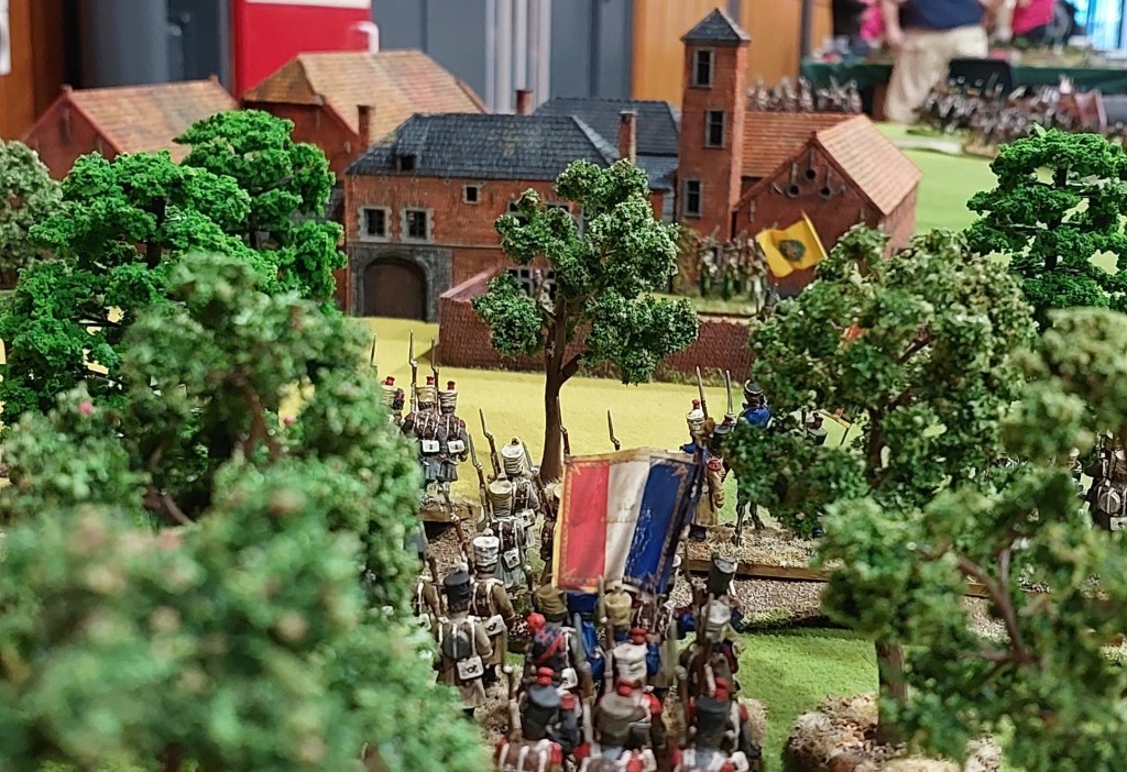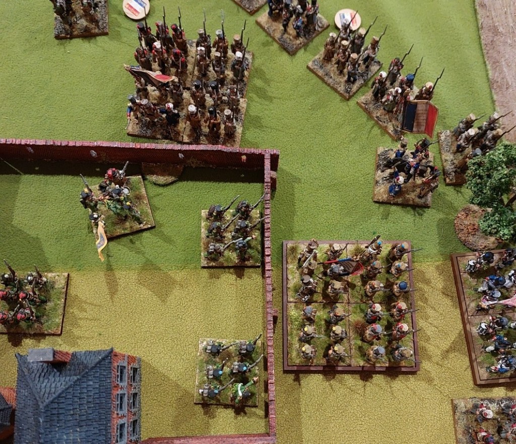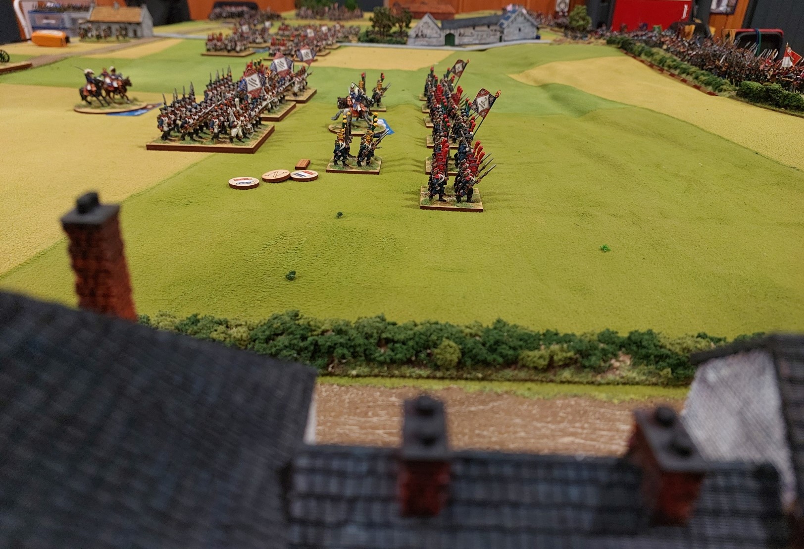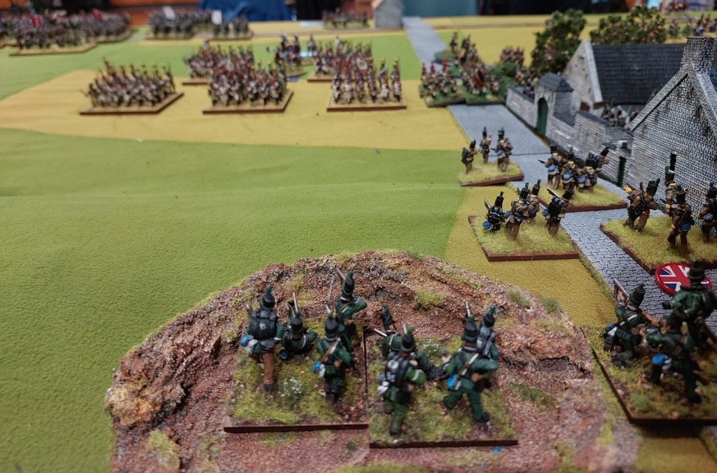 Keith(Reille) advances his Division’s towards the Beautiful model that is Hougoumont. Alan has made a superb job of this one. Nassau’s can be seen in the garden.