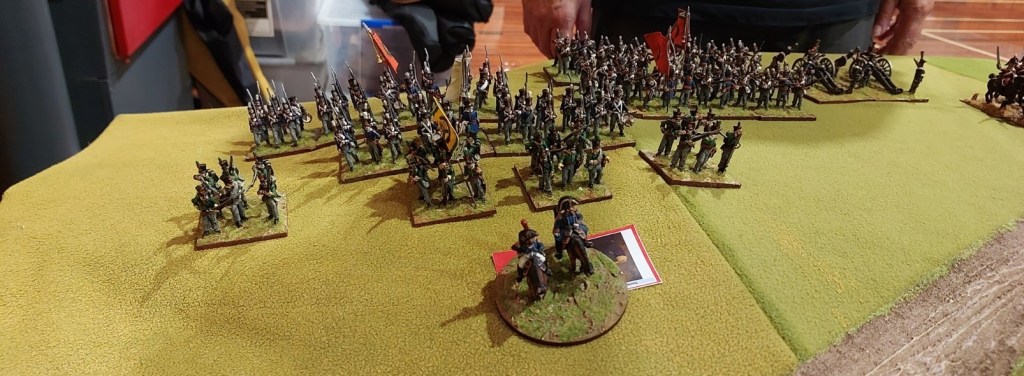 I was a wee bit shocked to see on other side of table Rob(D’Erlon) had thrown a division straight at the Hanoverians…with minimal support…and minimal damage on the Hanoverian Lines troops!
