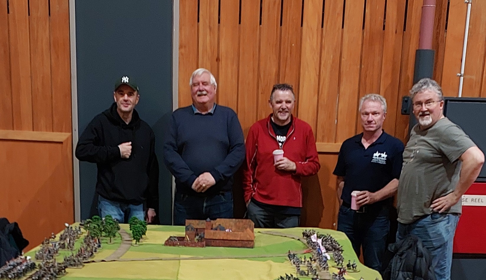 Rob made this lovely poster above for the game we staged at the Hutt Wargames Club annual convention ‘ValleyCon’ Saturday 22nd April 2023. There were around 160 gamers playing in a variety of competitions(including the DBMM’ers at the local school that is the Clubs normal gaming location) and we 6 GarageGamers with the demonstration game being a Waterloo re-enactment.