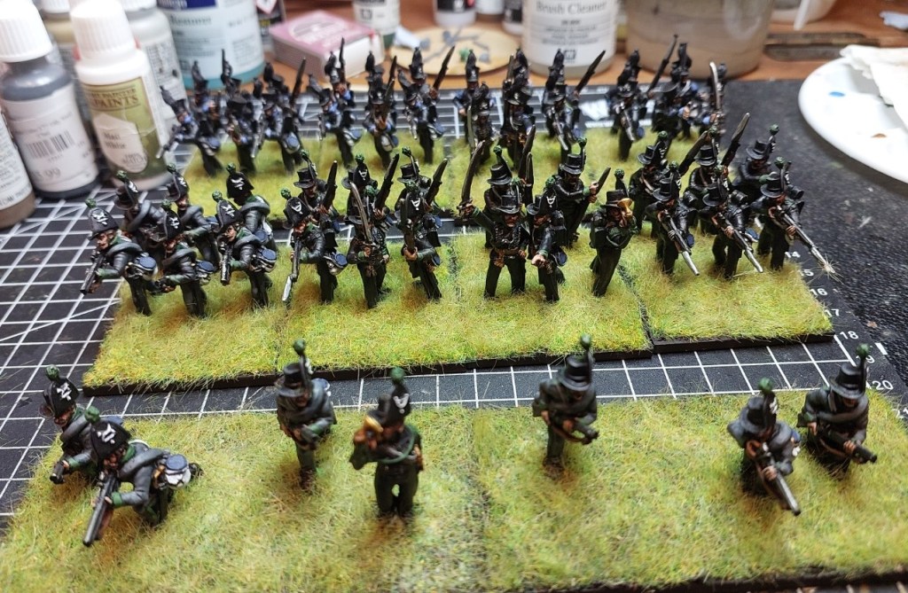 For those more informed readers…yes the Brunswickers are actually Portugese…..for the very good reason that the Brunswickers…..who belong to friend Weakley who is in Vanuatu…were not based…so this week…I based them…and here is a picture to prove their existence…on my paint table. DOH!.