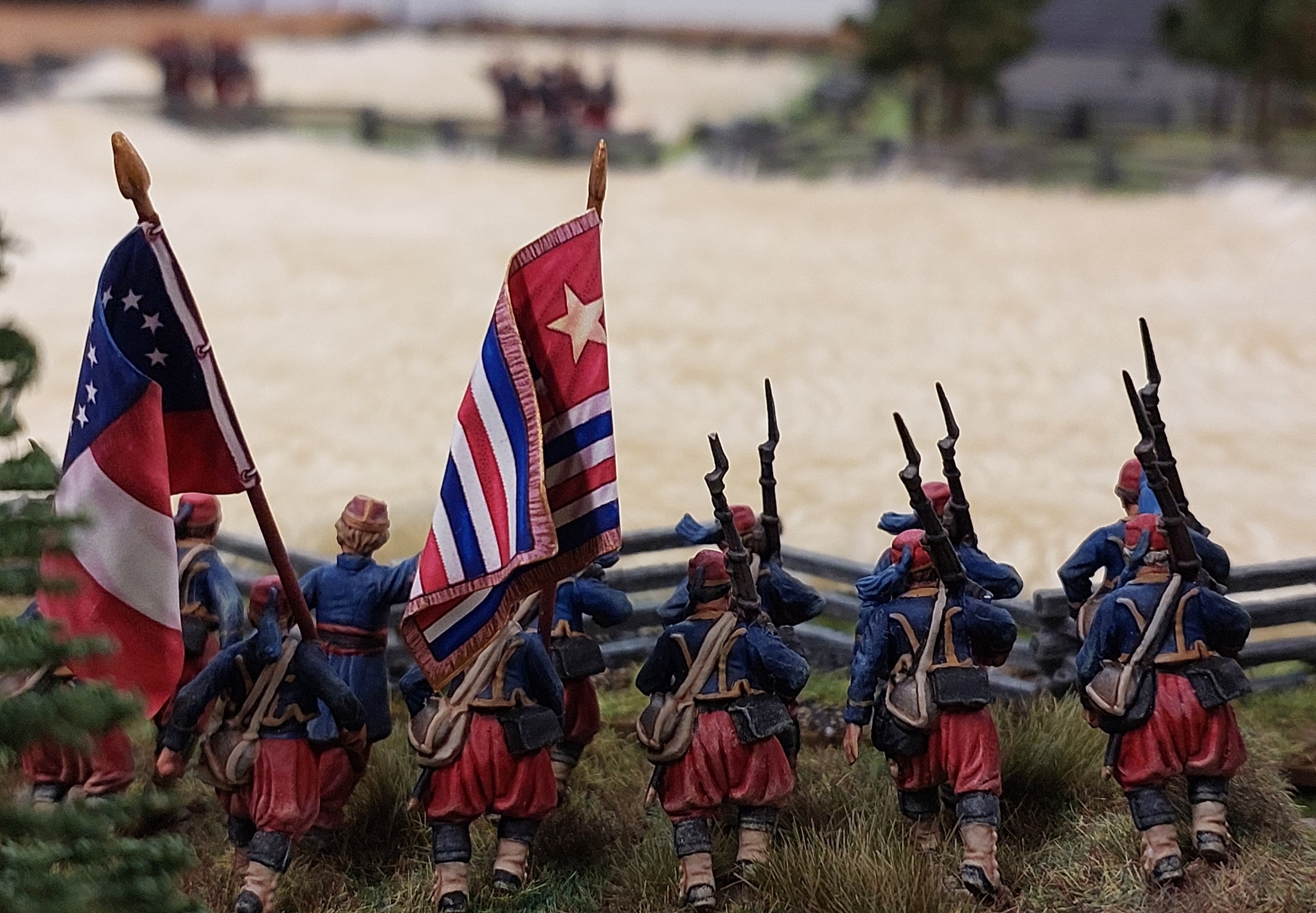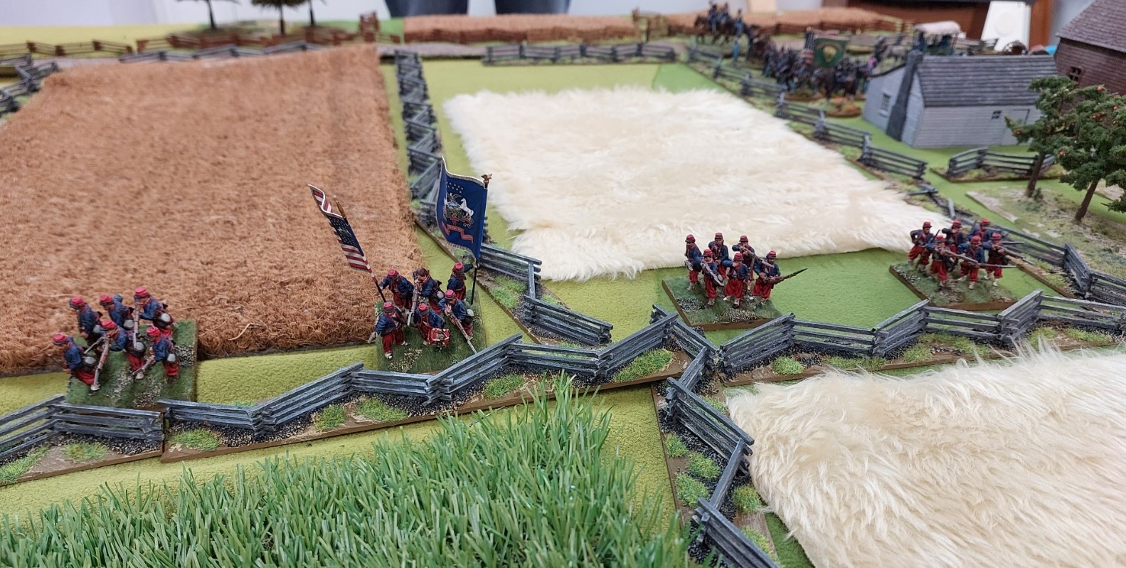 Keiths picket line….which got a dawn volley from the Confederate’s in the woods opposite them. The grey fencing is a welcome addition from Keith!!
