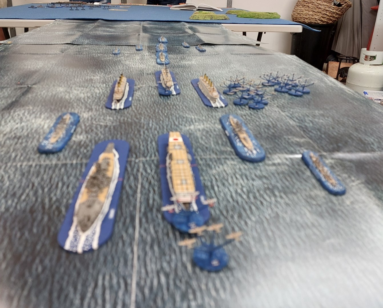 Ignoring the fact we hadn’t played for a year I set up a scenario bound to fail…but it meant we had lots of ships and planes on the table … and some combat actually occurred!
