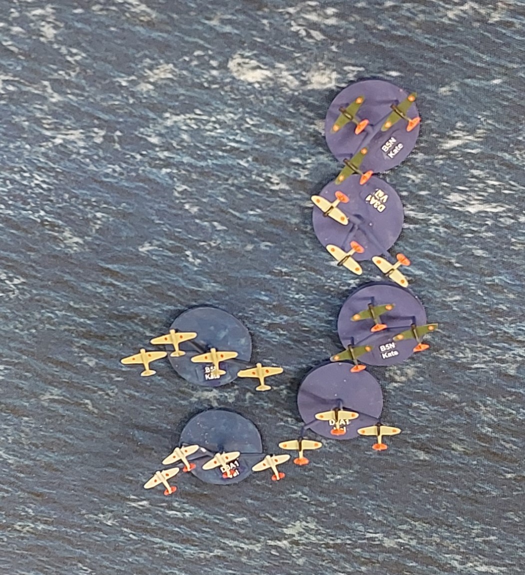 Close up of my Strike Force… my Kate’s are not touching the Zero bases so don’t get to support the fighter combat. New rule for me…..won’t happen again.