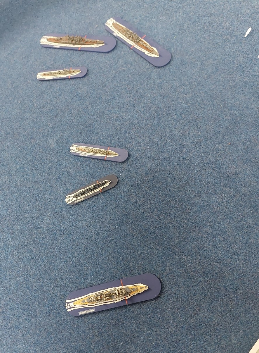 So, our 3rd Game of wee ships in a month and this time we went for a more balanced game of Cruisers and Destroyers(USN/RN v IJN). Each player was to have a Cruiser and 1 or 2 Destroyers. There were 3 players a side and as I was playing this game……there are less photos then normal, and to cap it off…a few were not good enough to use in this post.