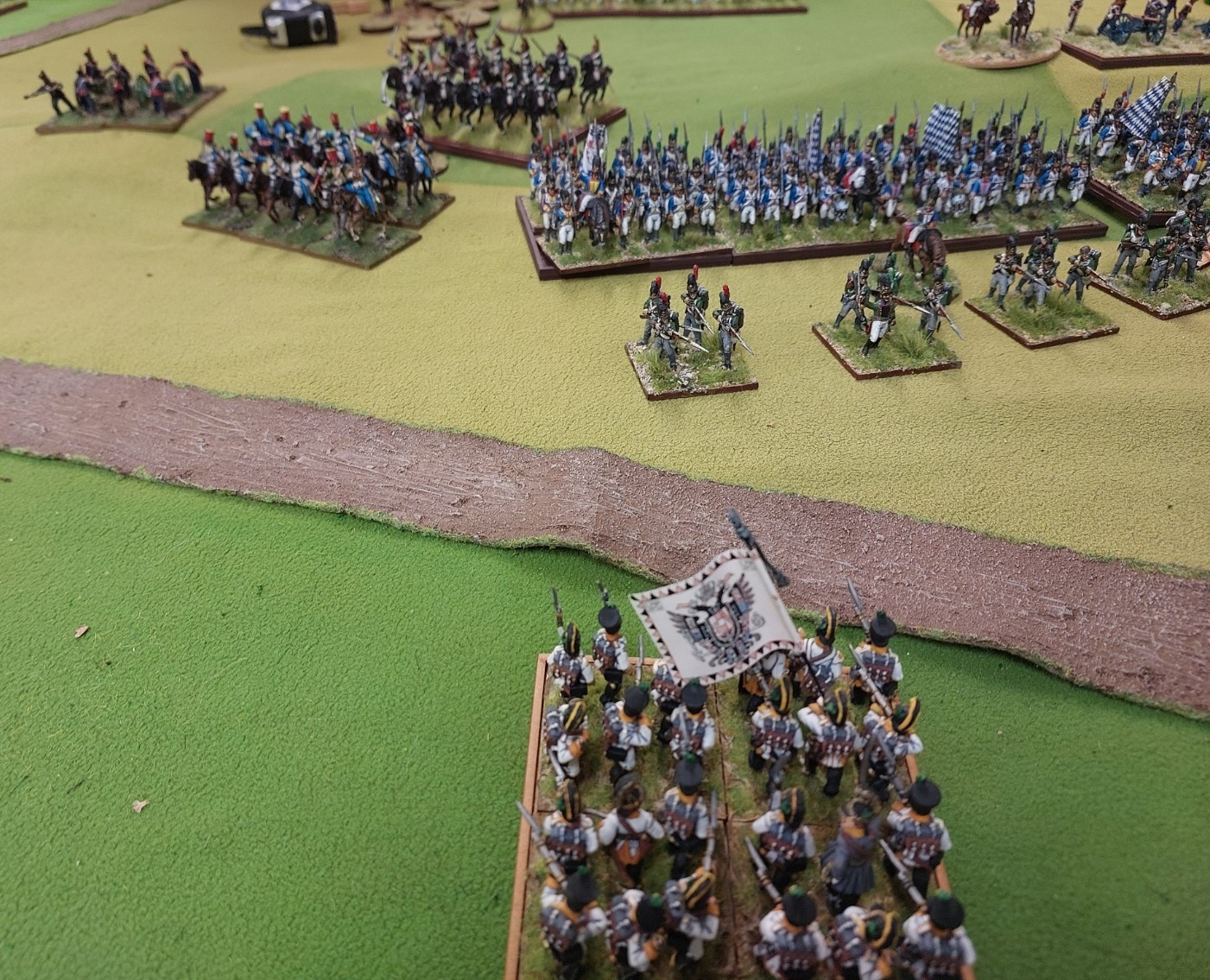 Then the Bavarian and Austrian cavalry charge/countercharge. With light cavalry where numbers are matched, it devolves into a series of attacks ending in mutual extinction. Light cavalry are not Battle Cavalry, unless they have pointy sticks… or are Guard types.