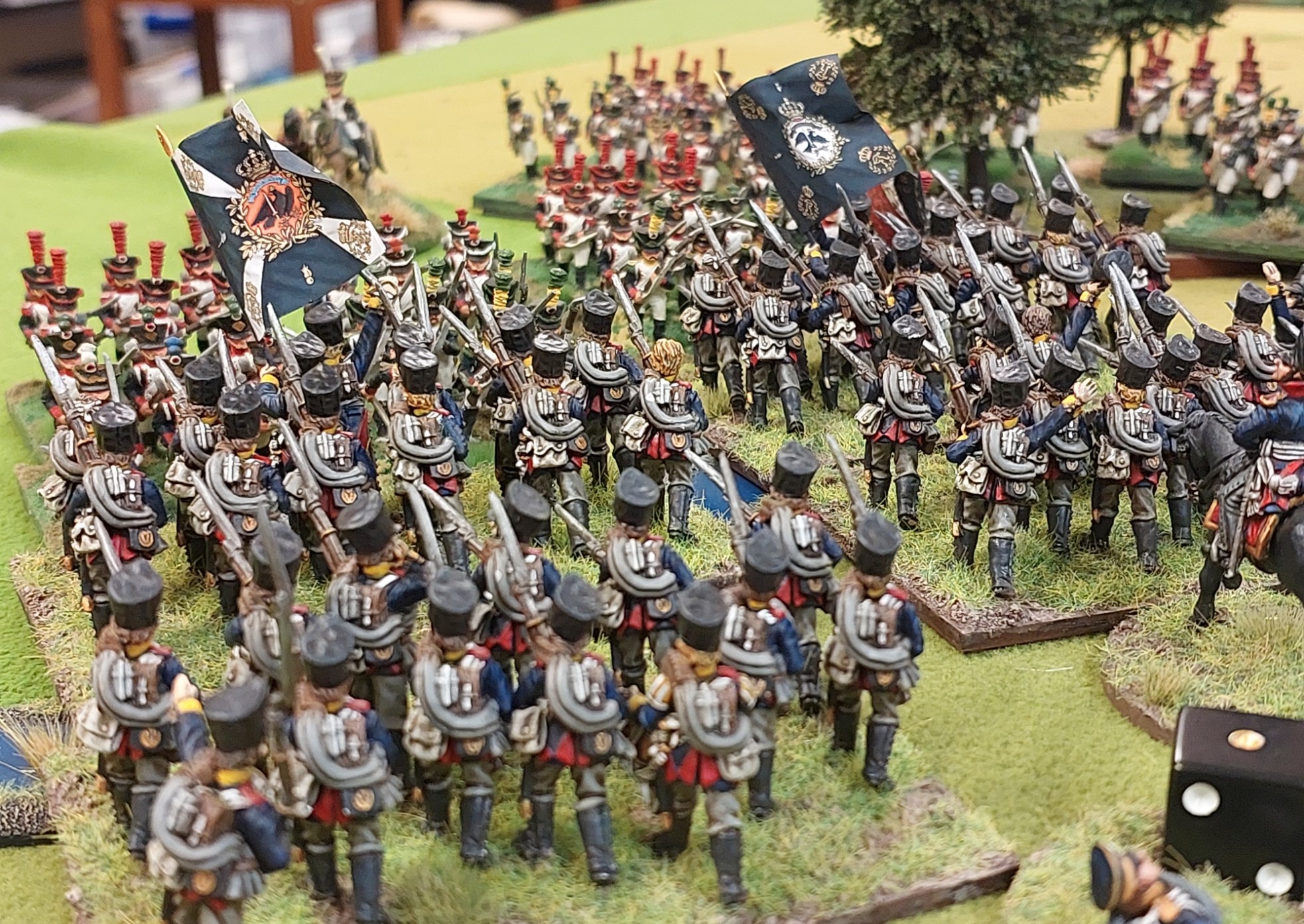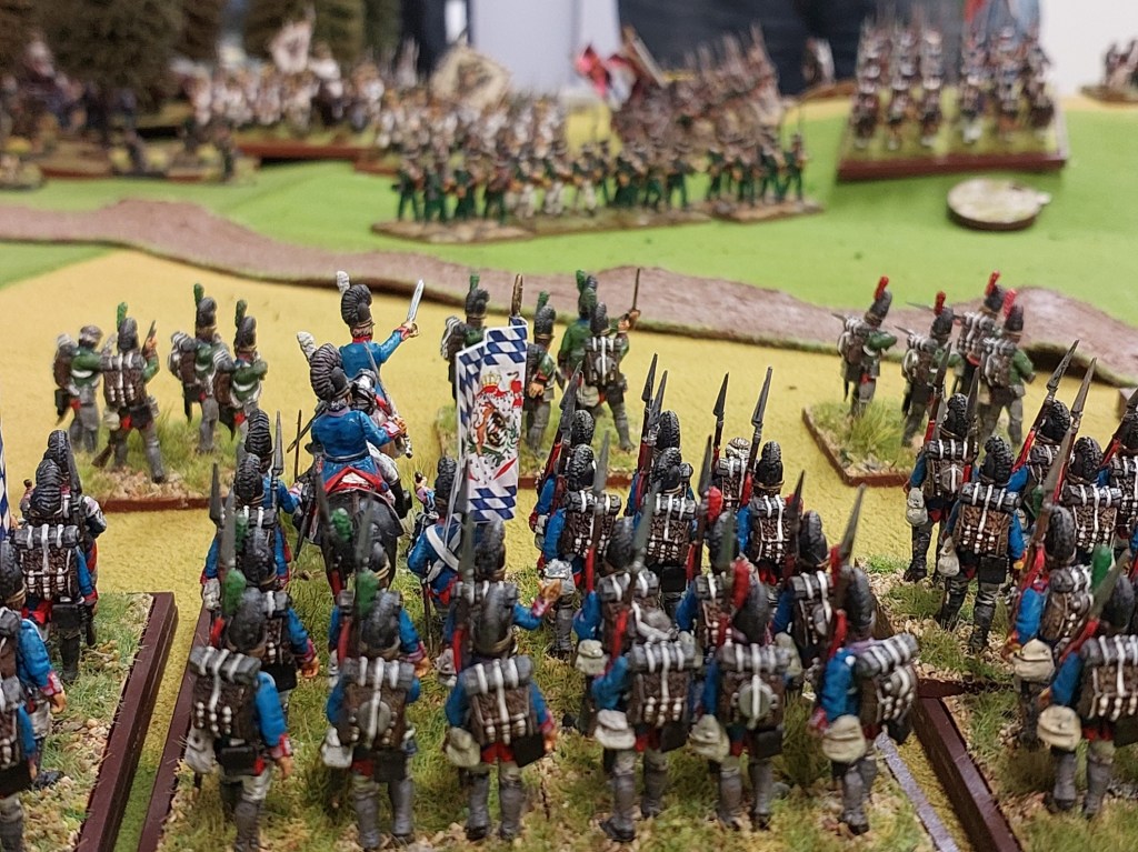 But another Austrian large column has found a target. The Austrians get 8 attacks…hit on 3, save on 3 as are a column. Bavarians get 3 shots as they close in….hit on 3’s and then get 6 attacks in combat. Supporting units assist in the combat resolution stage.