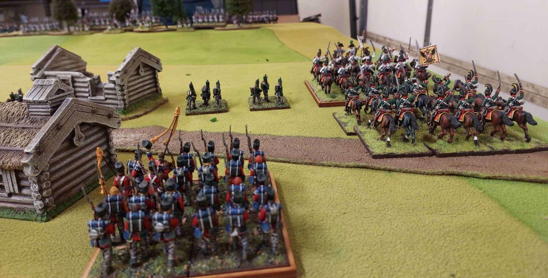 Back in the centre and Graham is still trying to get into the church. But more important in the top left corner is Grahams Hussars getting a charge in on Keiths shaken Uhlans….this was to be decisive for the game.