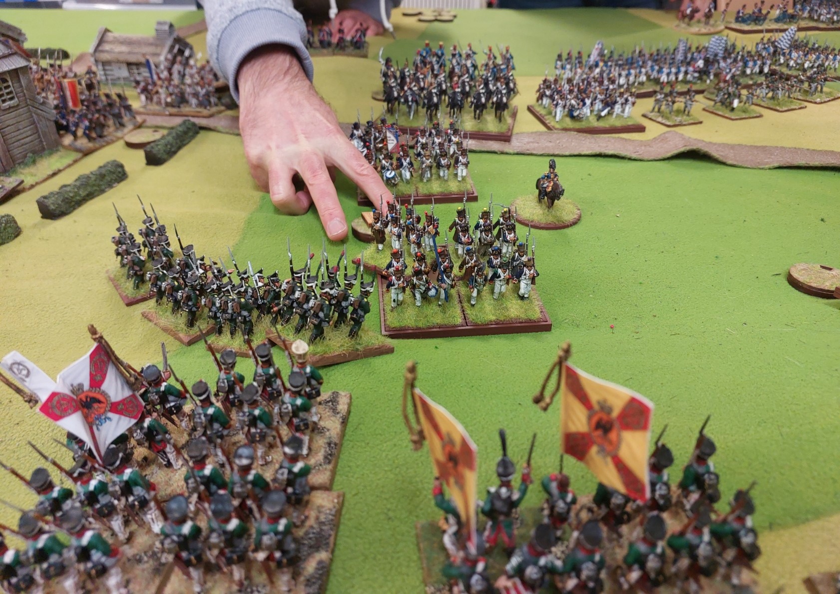 Over on the Austrian flank Stephen has managed to make the game after all…and brought along some of the British he is painting so these replaced some Austrian units, and he played this side.