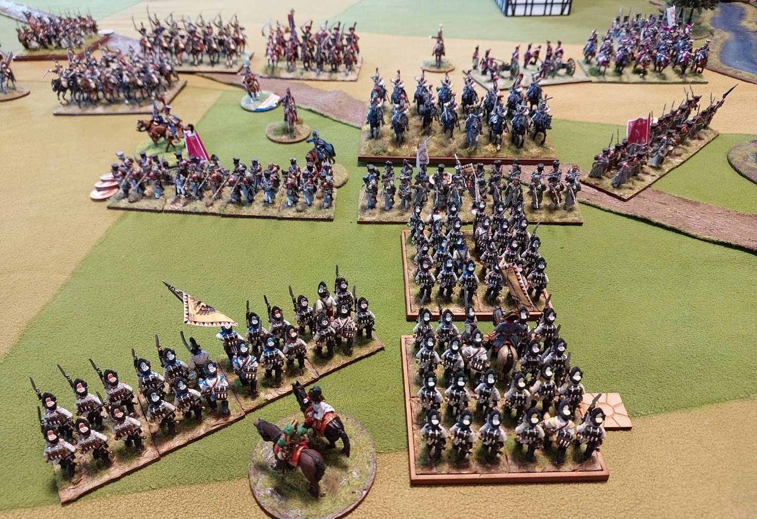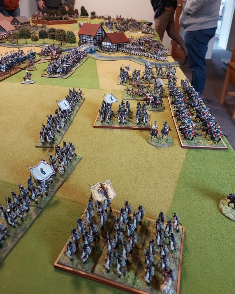 Keithy moved his Landwher Cavalry over to block our side of the river and the Russian Grenadiers can at last be seen advancing to the right of the village.