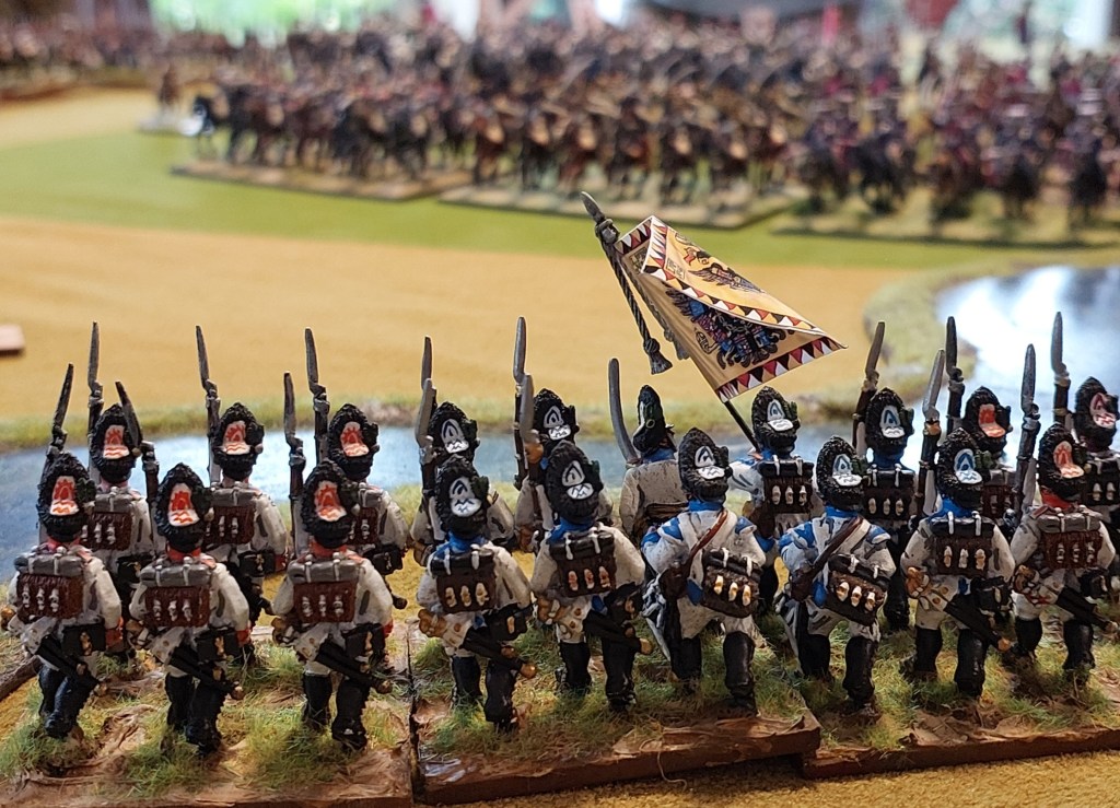 On the right Keithy has it sorted. A skirmish line…supported by columns…with artillery and then pointy stick cavalry. Was a thing of Beauty.