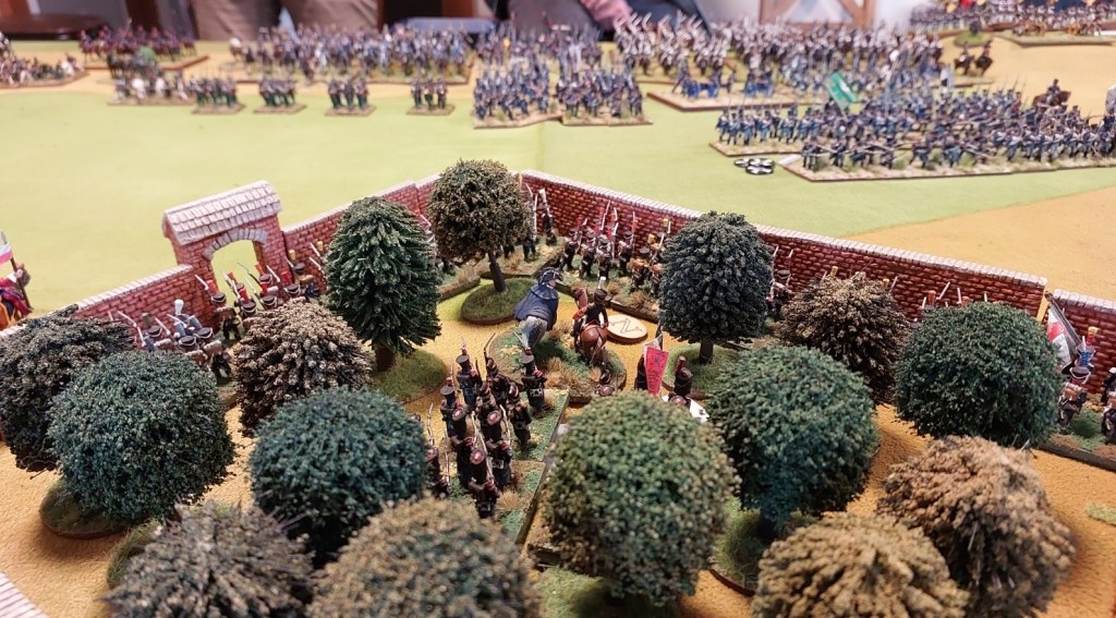Roberts conscripts were skulking in the walled gardens…the perfect spot for them. Especially when musket fire from LINES are not really going to hurt them.