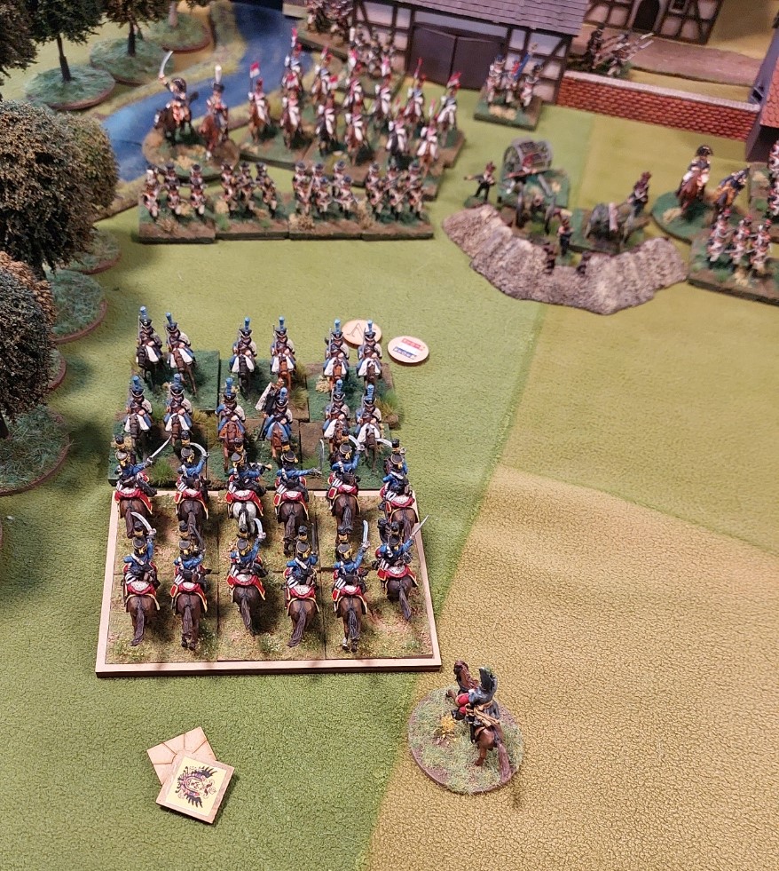 Stephen has lost his 2 infantry division’s,,,rain does that to you……so he had 2 Hussar units left so he charged French Cuirassiers……and…won!