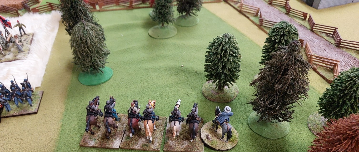 They large 4th Union brigade never arrived……..trigger was me getting forced off my hill or Union losing a brigade….which would have been the cavalry if Goldie had sacrificed them quicker…..I kept reminding him about it!