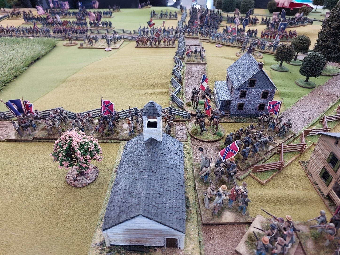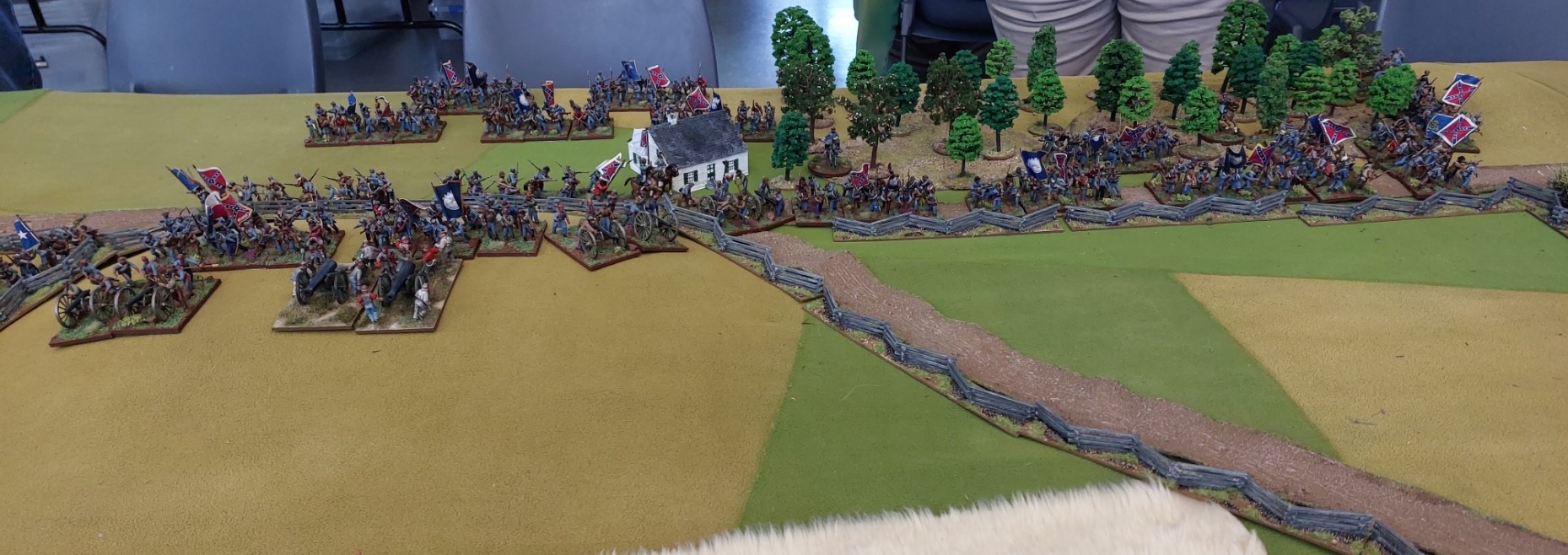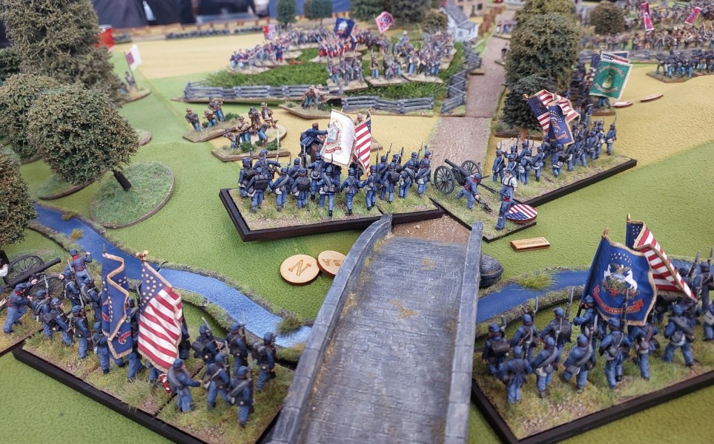 Great photos of your very well presented game. Antietam is a very interesting battle to refight, though the disparity in numbers can create some challenges. In our refight, September 2022, the Union players refused to attack the area of the Sunken Road.