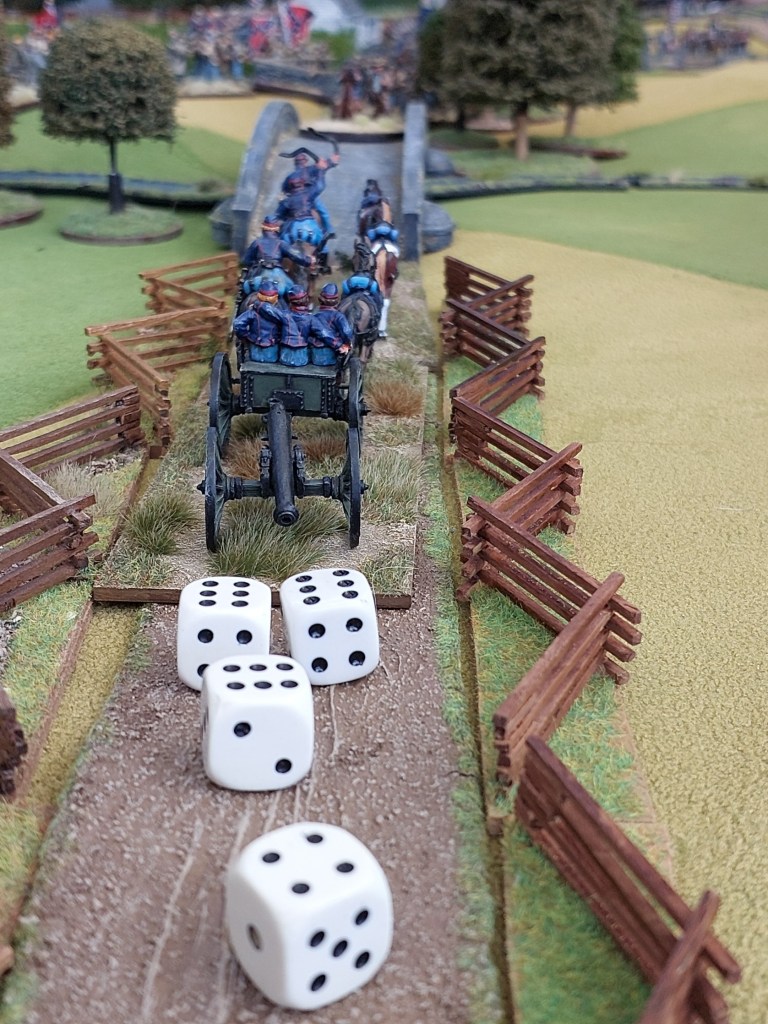 The Union guns while attached to brigades could not be ordered as part of the brigade move but must be ordered individually. Infantry fire had been reduced to 12inches for everyone except the Irish Brigade who were still using Smoothbores. They do get an extra shot at close range.