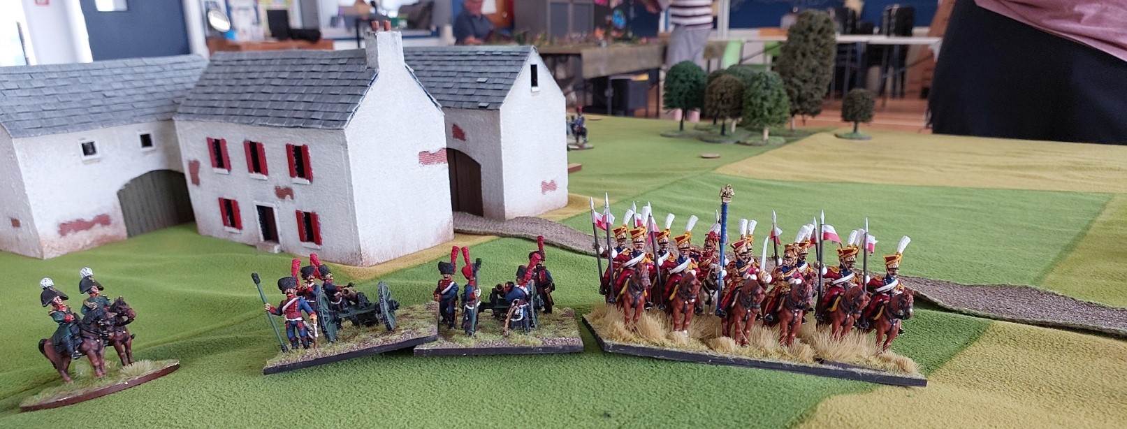 After taking out the Prussian cavalry a unit of Guard lancers was flank on to my Hussars who managed to get a ‘Follow me’ into them. They destroyed the Lancers and carried on into the Horse Grenadiers but did not destroy them. I then rallied them back to face the Horse artillery that would now rock up and destroy them. I figured it was a worthy sacrifice in the scheme of things. Some Cossacks had wandered over to guard their flank and offer support. They would soon be destroyed.