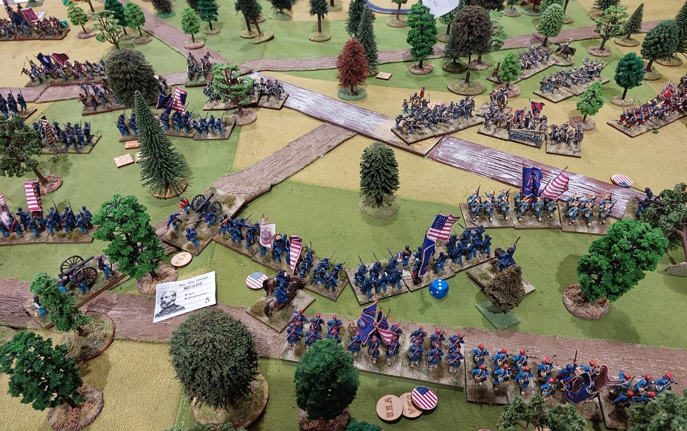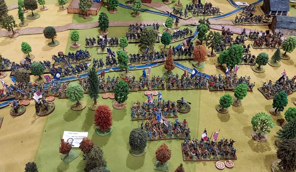 So there were 11 of us playing this year, 6 Union and 5 Confederate players. Each player had 2 brigades of 5 regiments each, 1 battery, 2 brigade commanders and a division commander. Each division commander had personalized attributes to add a bit of flavor.