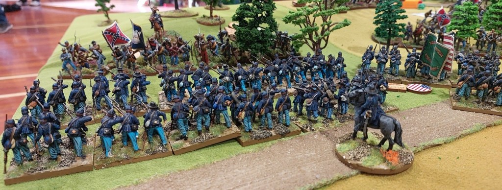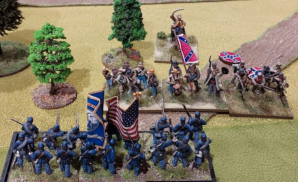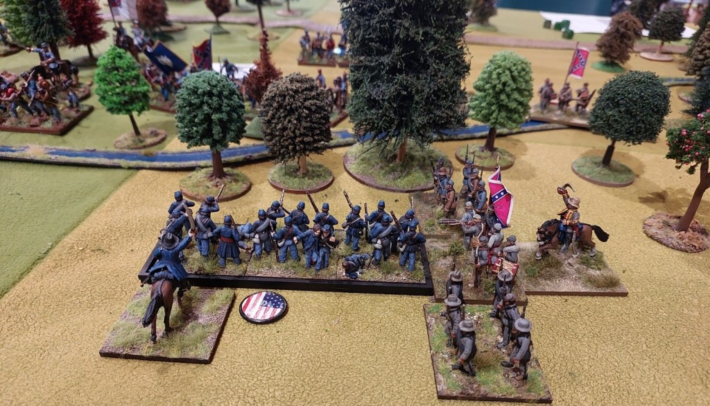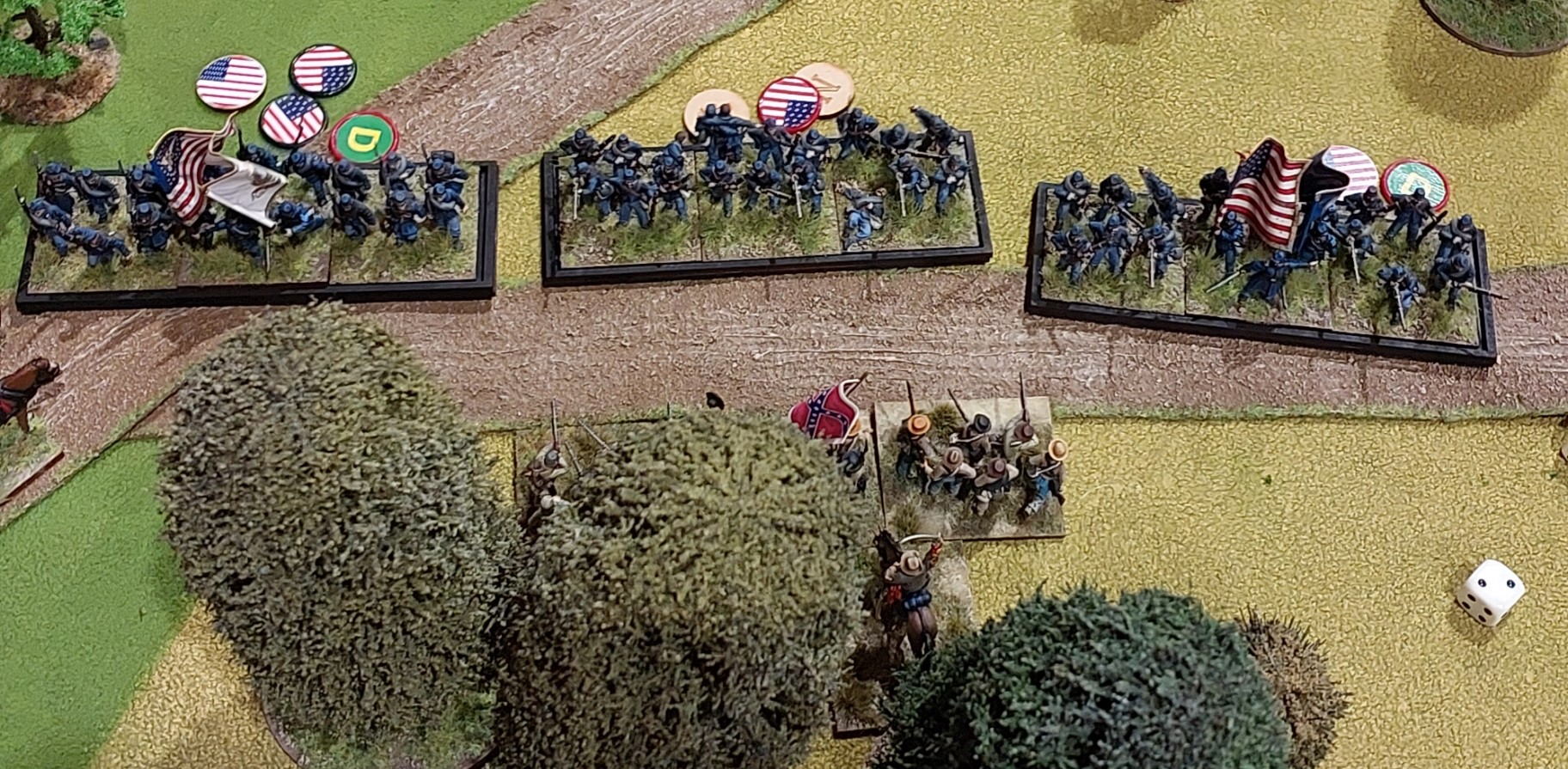 A perfect opportunity presents itself to one of my units. 2 shaken Union units face it….if I can get a charge in….with average dice may make a breakthough.