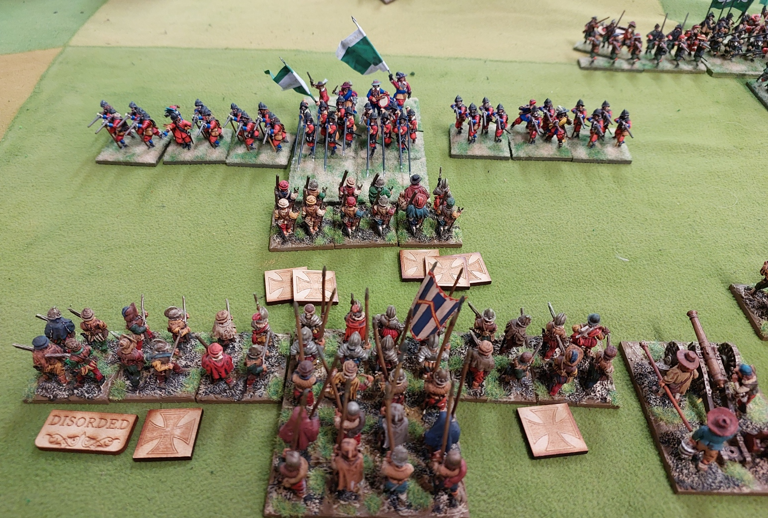 In a fashion worthy of elevation to ranks of ‘Heroic’ a unit of hand gunners held off the charging Pike block for round after round of combat while both sides shot away at each other.