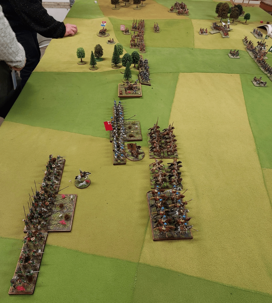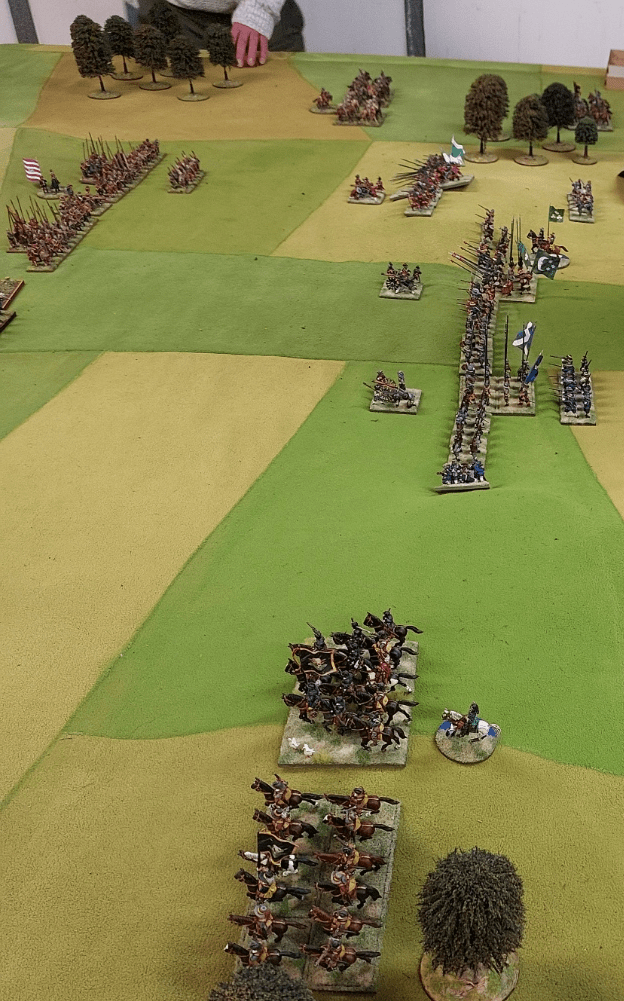 In true period fashion…the cavalry in the flanks go at it from the start.