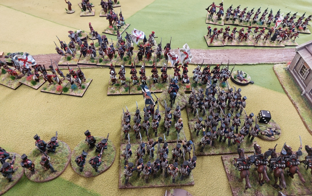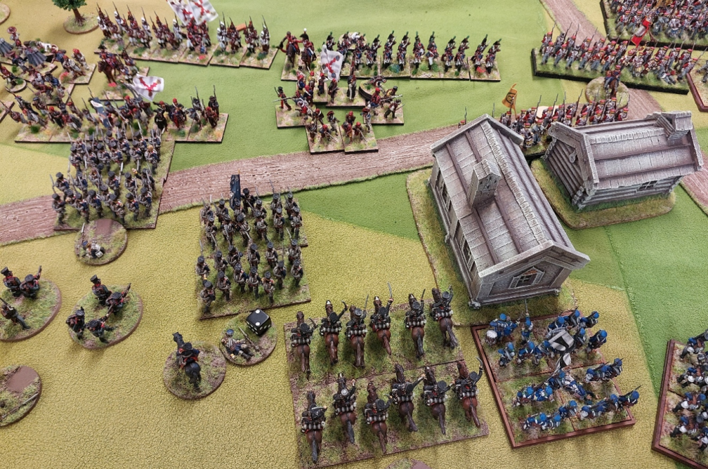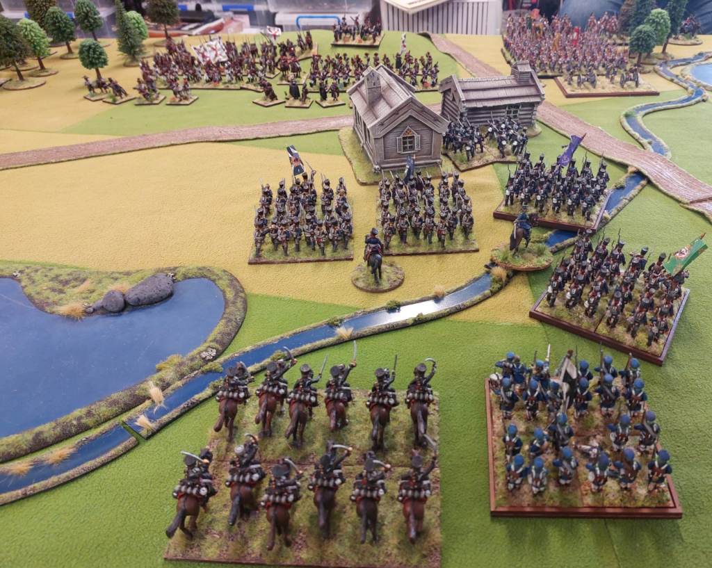 The village changed sides several times…sucking units in….very historical. Hanoverians have it below.